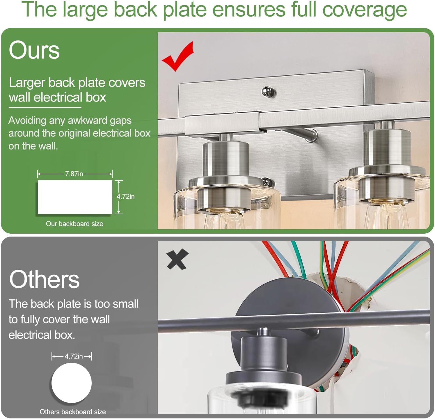 - Standard E26 Base – Safe & Long-Lasting: This bathroom light features a standard E26 socket that resists overheating, even with long-term use. It helps extend bulb life and reduces the need for frequent replacements — providing a safe, cost-effective lighting solution for your bathroom and more.