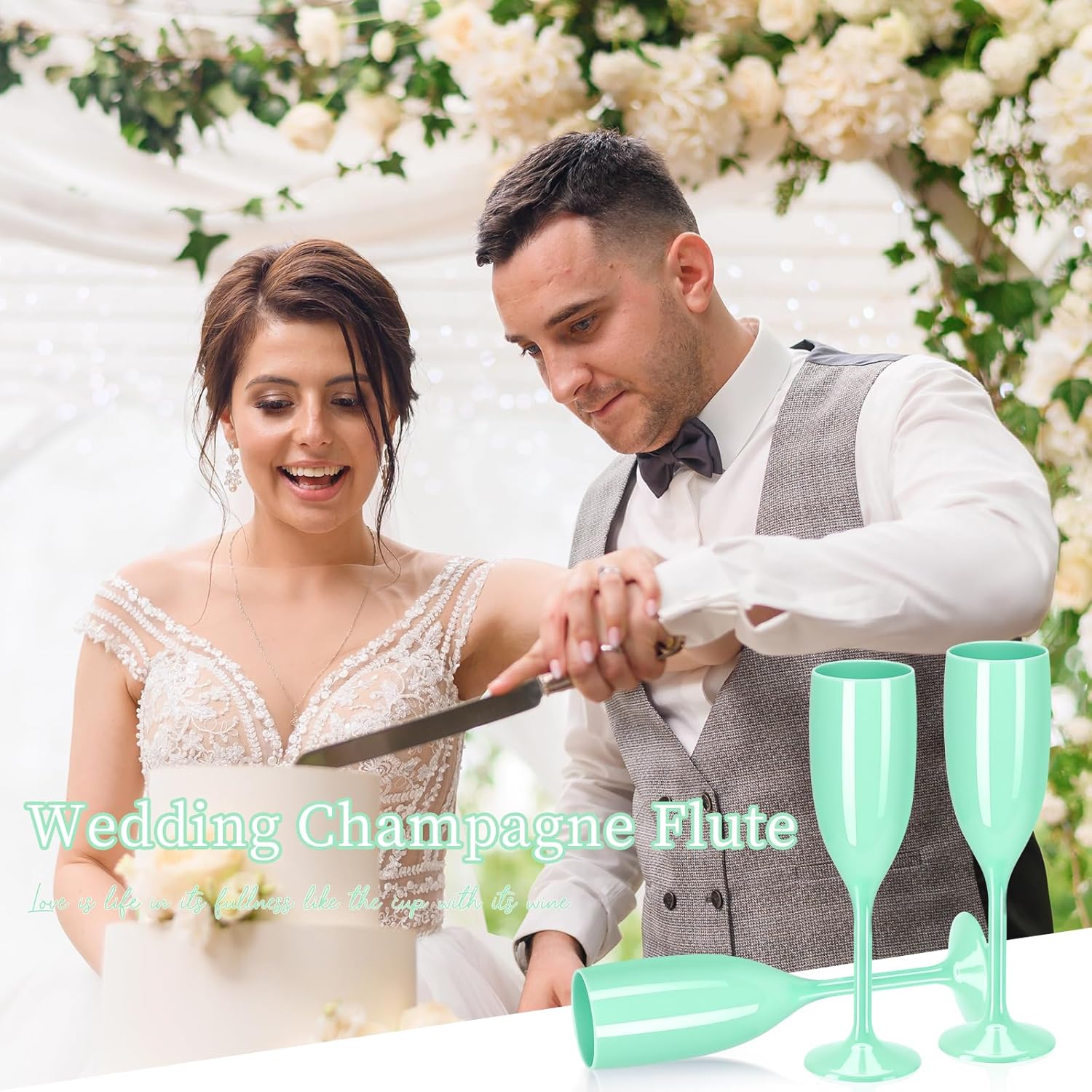 XUWAIDSGN Acrylic Champagne Flutes Toasting Glasses Unbreakable Mimosa Bar Reusable Wine Glasses Vintage Champagne Flutes Stemmed Drinking Cups 5.4 OZ for Christmas Birthday (24, Mint Green)