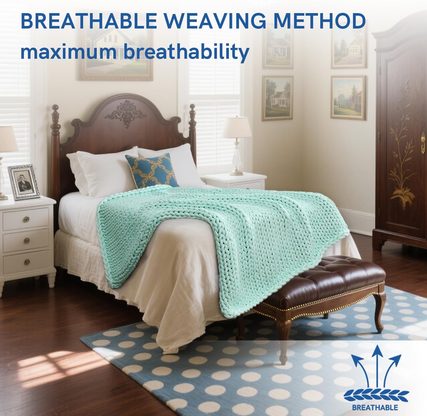 YnM Cooling Chunky Throw Blanket, Medium-Weight, Hand Knitted, Skin Friendly, Ventilated and Breathable, Machine Washable, Home Décor Piece for Couch, Sofa and Bed (Menthe Green, 50x70 Inch)