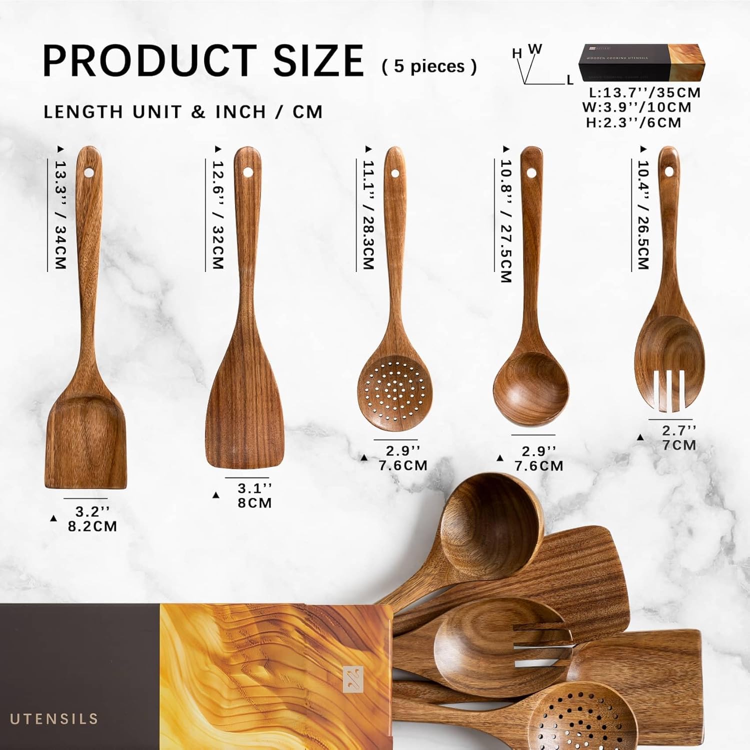 - ALL-IN-ONE UTENSIL SET:Get a complete cooking solution with our Wooden Utensils for Cooking Set with wood spoons and spatulas.Versatile tools for all your cooking needs