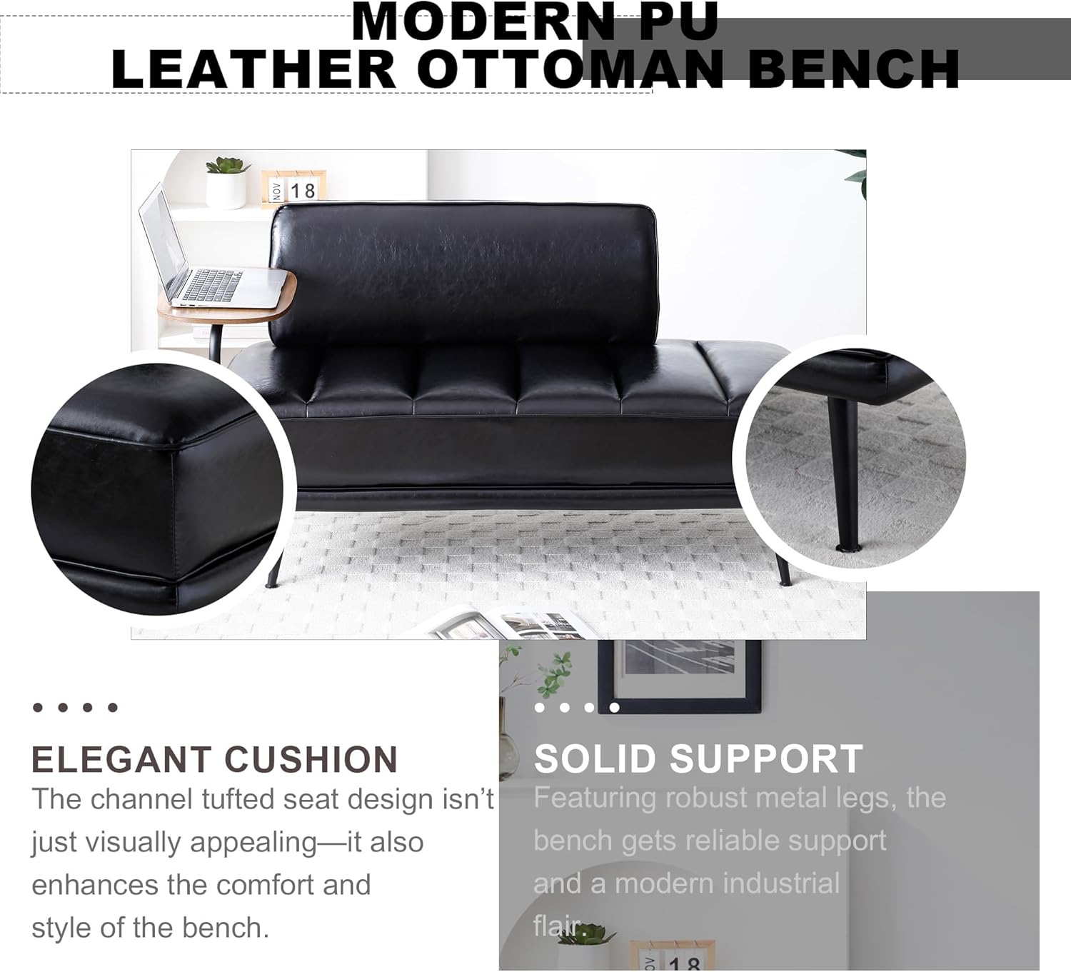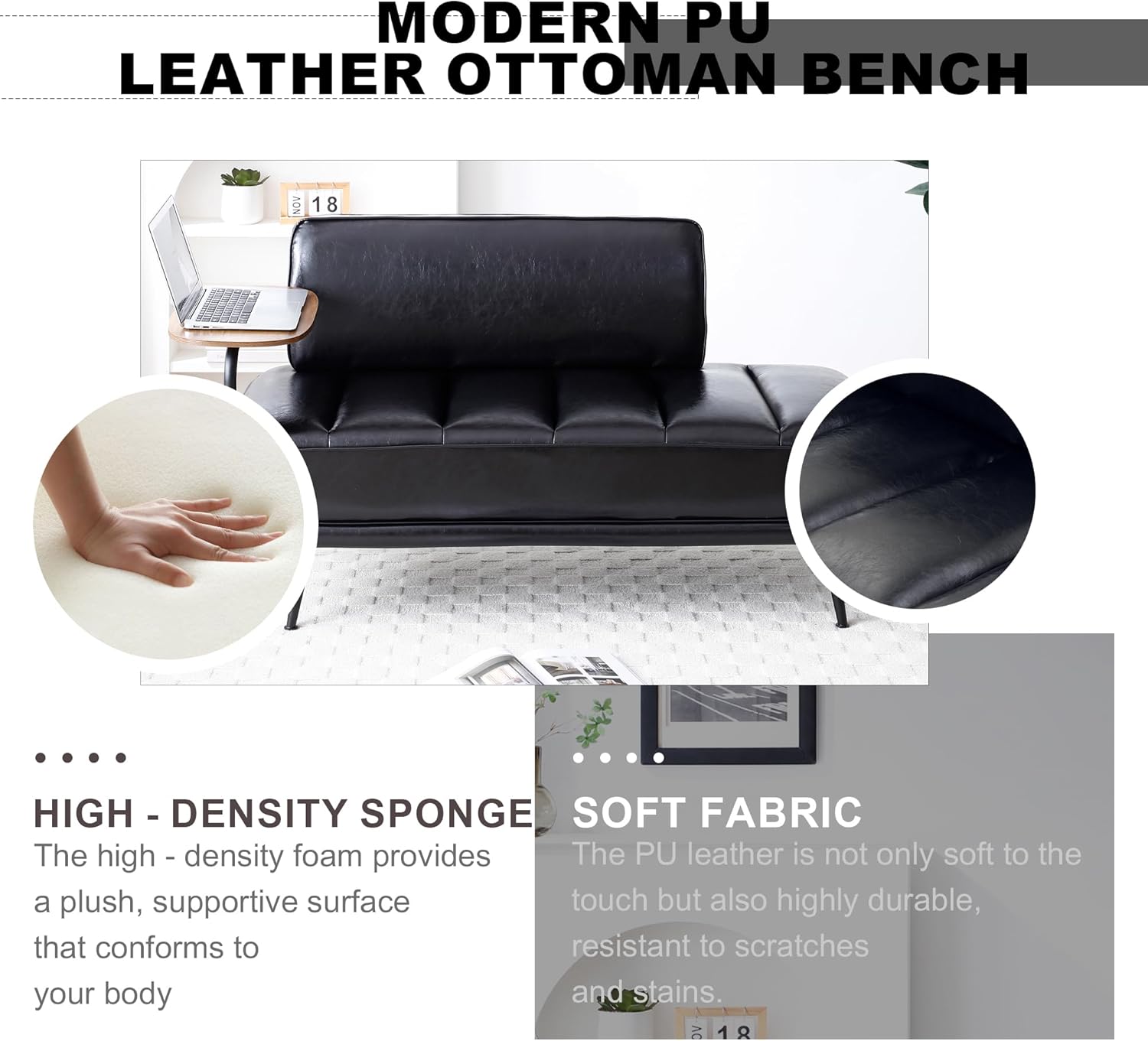 Sofa,Bed Bench,Small Spaces Furniture,Polyurethane Leather,Wood Frame,High Density Sponge Infillings,360-Degree Swivel Tray,Black Metal Leg (Black)