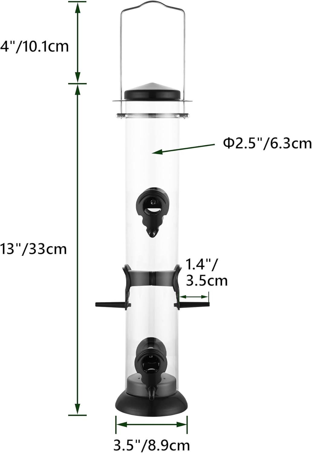 - 【Fit For Small bird,No More Issues With Big Birds Hogging】Design for Small birds and 1.4” perch and feeding port only fit for small birds which them use easily,like Chickadees, Titmice, Sparrows, Finches. No more issues with blue jays and doves hogging the feeder!