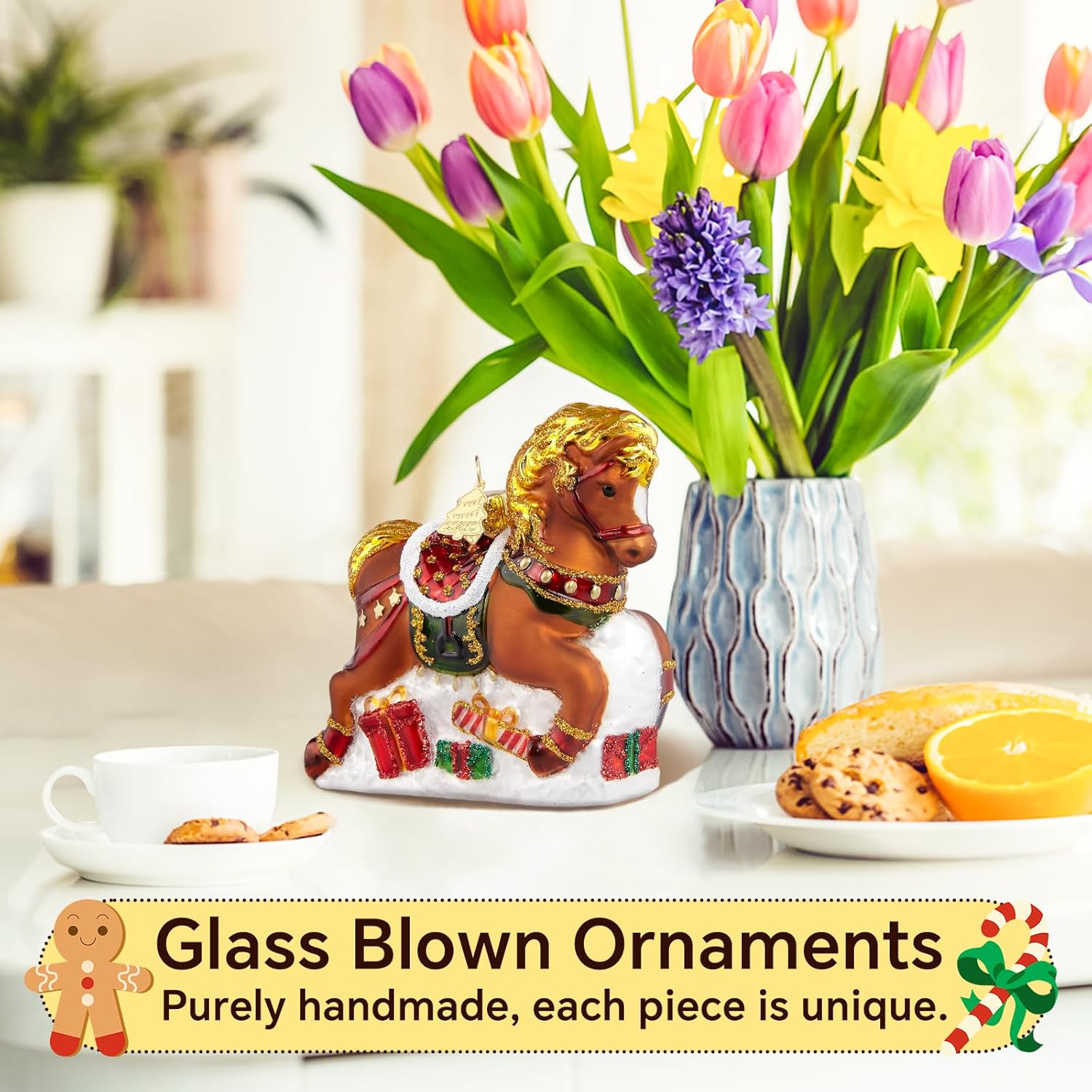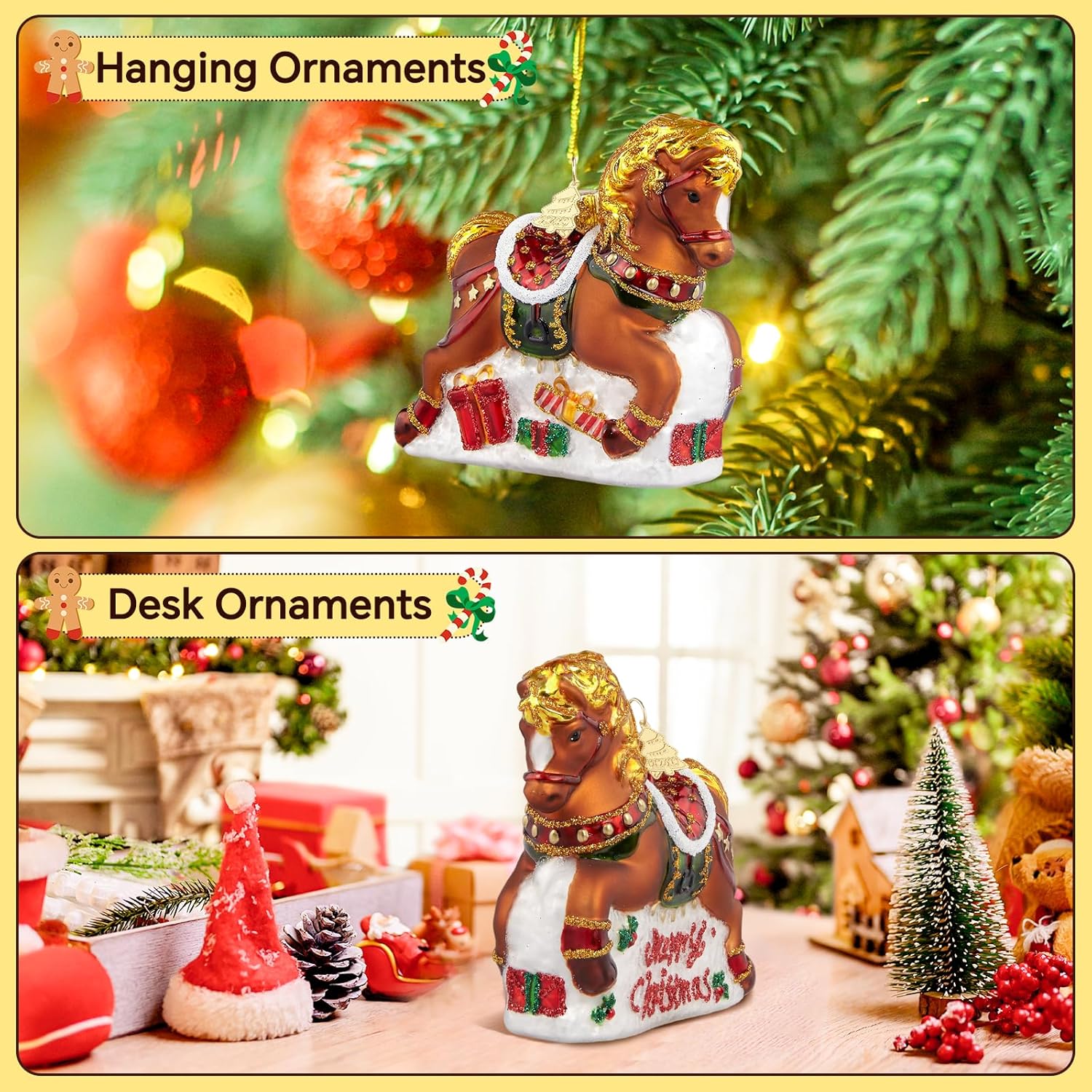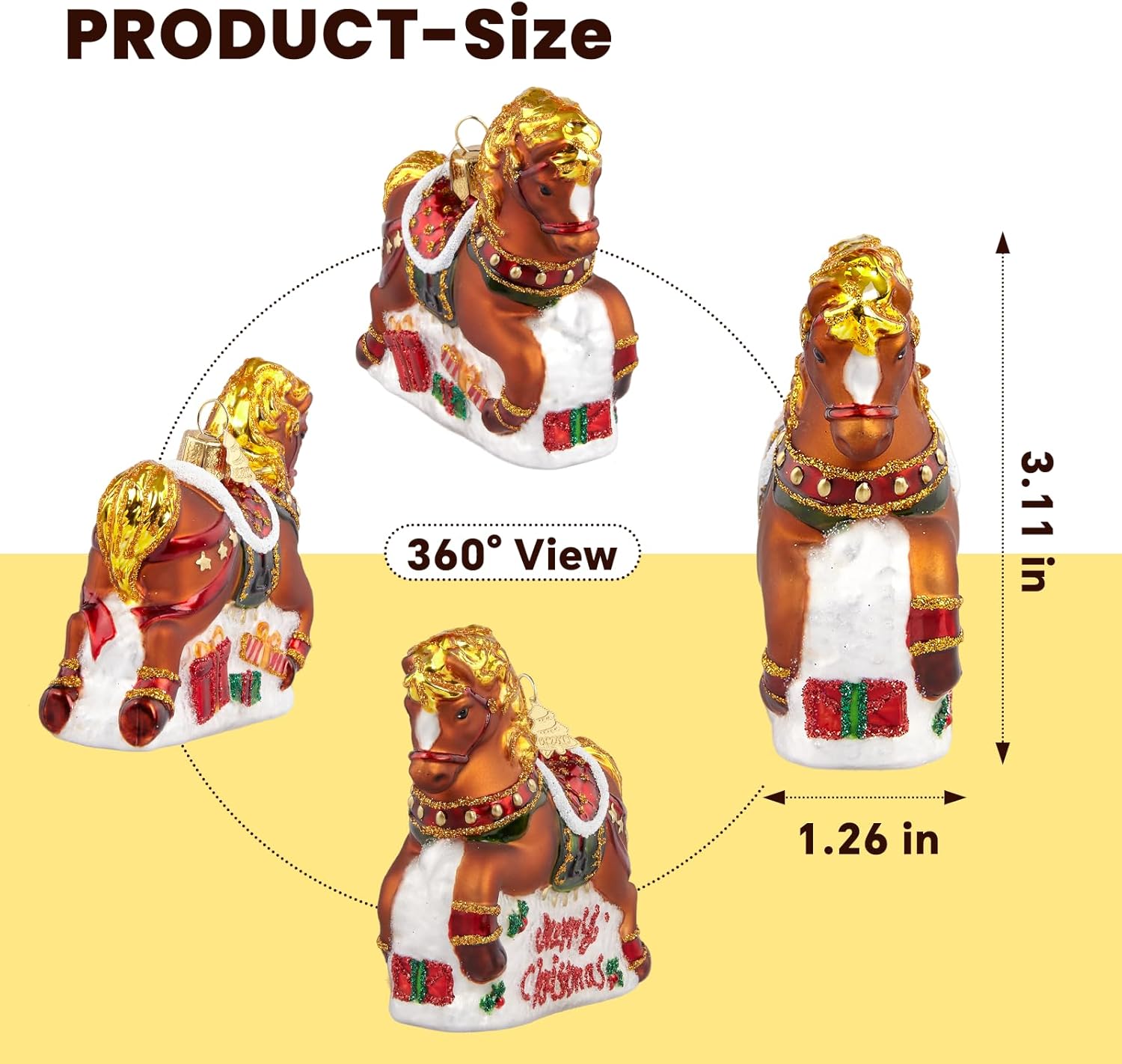 - High-Quality Material: The size of this Horse ornaments for Christmas tree is 3.11*1.26*3.27 in. Hand-blown glass christmas ornaments have a delicate and smooth surface, no pungent odor, are not easily damaged during natural use, and are easy to clean with a soft cloth
