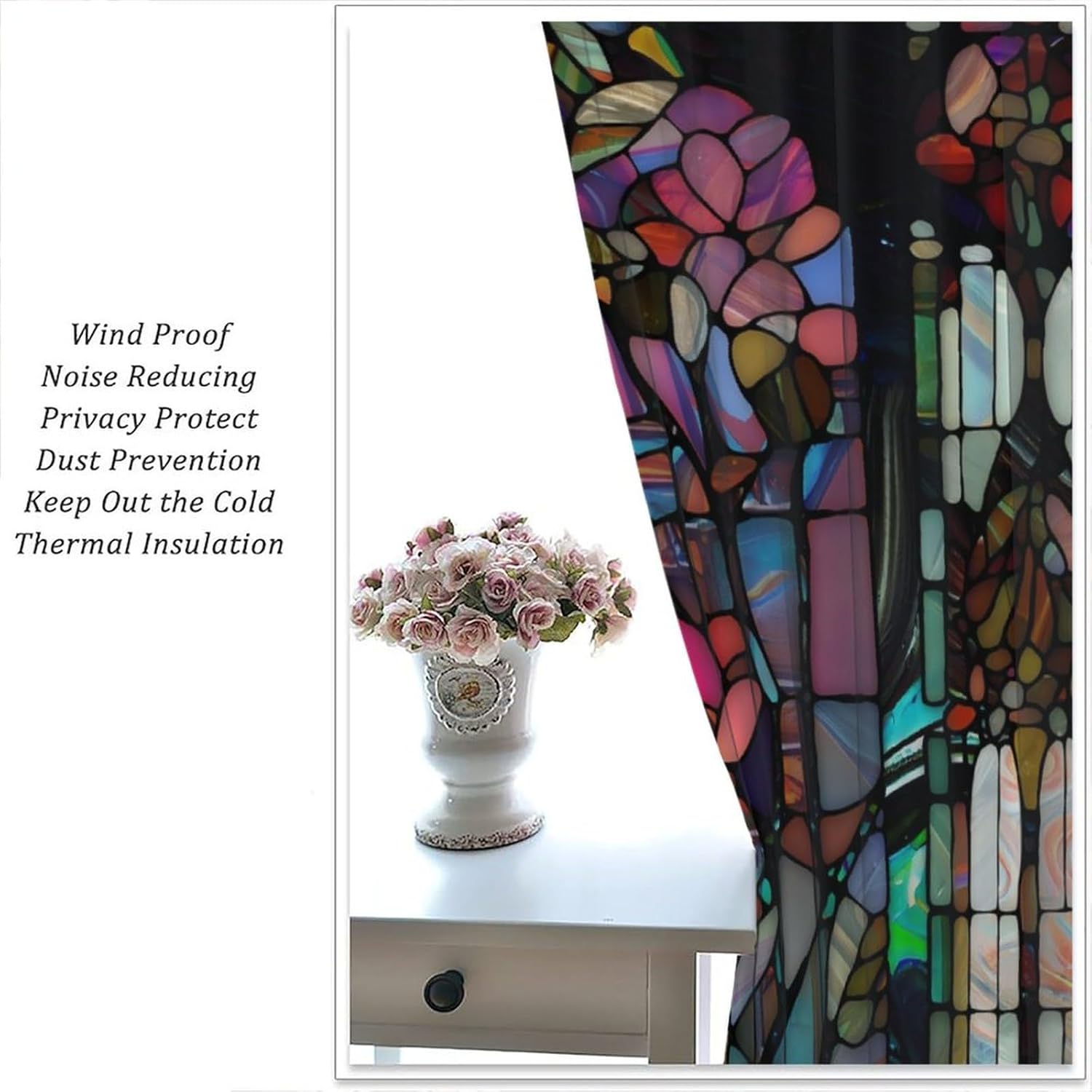 Stained Glass Curtains,Vintage Colorful Abstract Art Home Decor Drapes for Bedroom Living Room Kitchen Window Treatment 2 Panels Set Total Size 42" W X 45" L Inch
