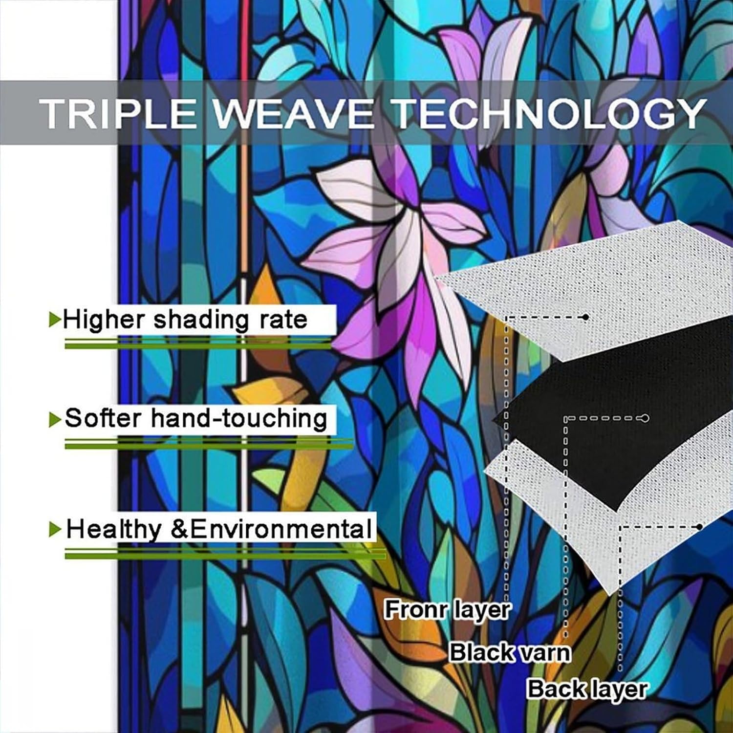 Stained Glass Curtains,Abstract Colorful Floral Geometric Art Home Decor Drapes for Bedroom Living Room Kitchen Window Treatment 2 Panels Set Total Size 42" W X 54" L Inch