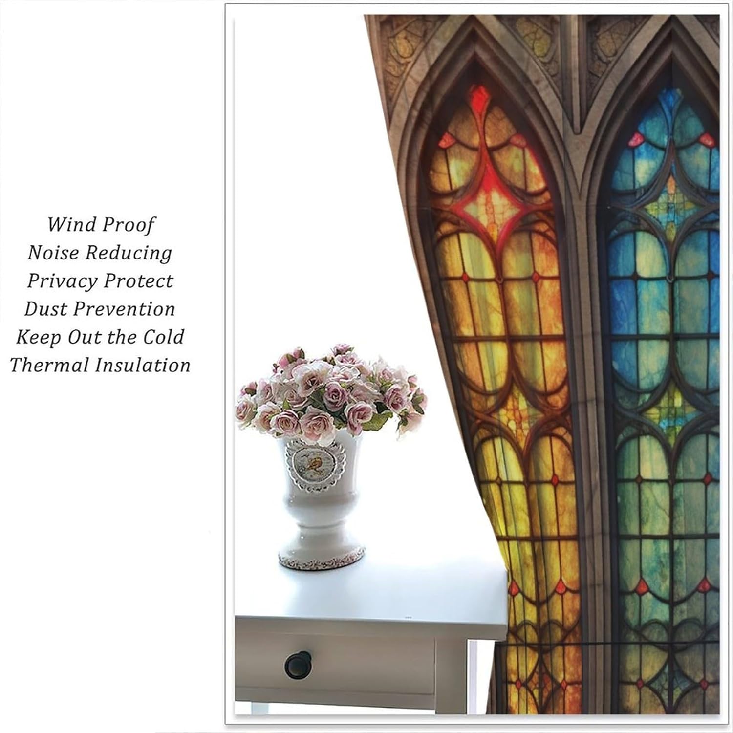 Stained Glass Curtains,Mid Century Vintage Style Abstract Art Home Decor Drapes for Bedroom Living Room Kitchen Window Treatment 2 Panels Set Total Size 84" W X 84" L Inch