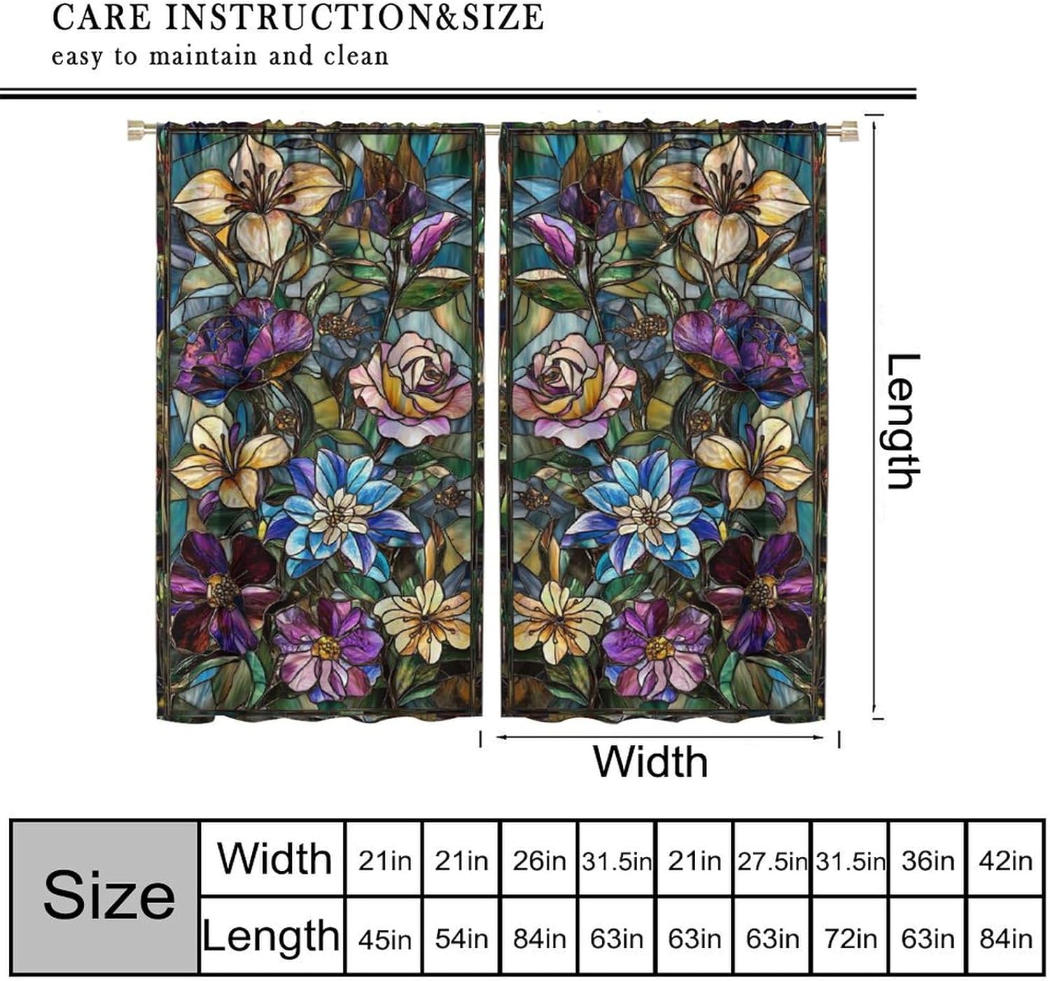Stained Glass Curtains,Retro Colored Glass Flowers Art Home Decor Drapes for Bedroom Living Room Kitchen Window Treatment 2 Panels Set Total Size 72" W X 63" L Inch
