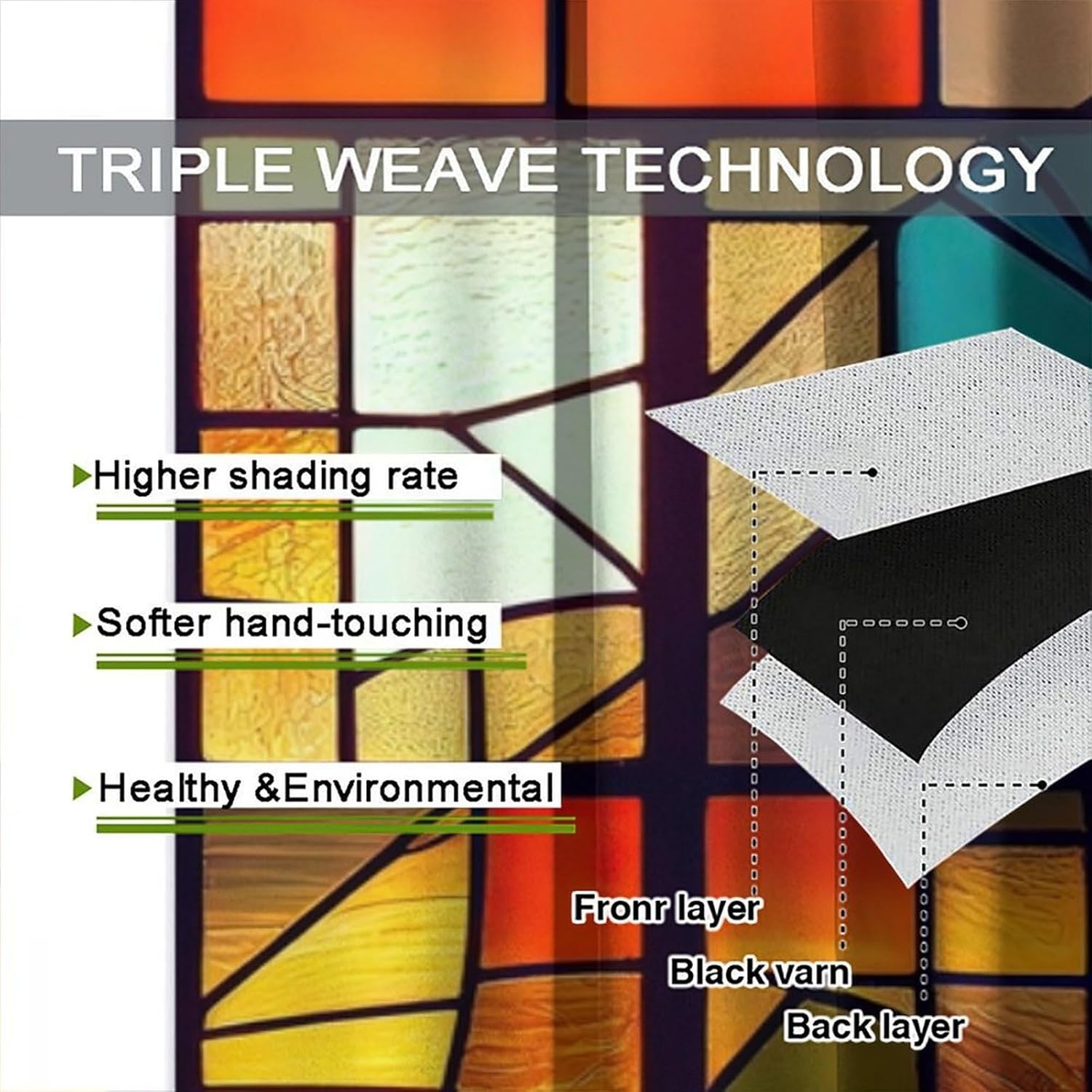 Stained Glass Curtains,Retro Abstract Colorful Geometry Textures Art Home Decor Drapes for Bedroom Living Room Kitchen Window Treatment 2 Panels Set Total Size 63" W X 72" L Inch
