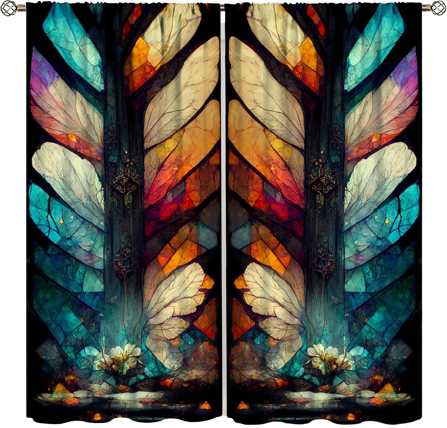 Stained Glass Curtains,Vintage Magical Colorful Abstract Art Home Decor Drapes for Bedroom Living Room Kitchen Window Treatment 2 Panels Set Total Size 42" W X 45" L Inch