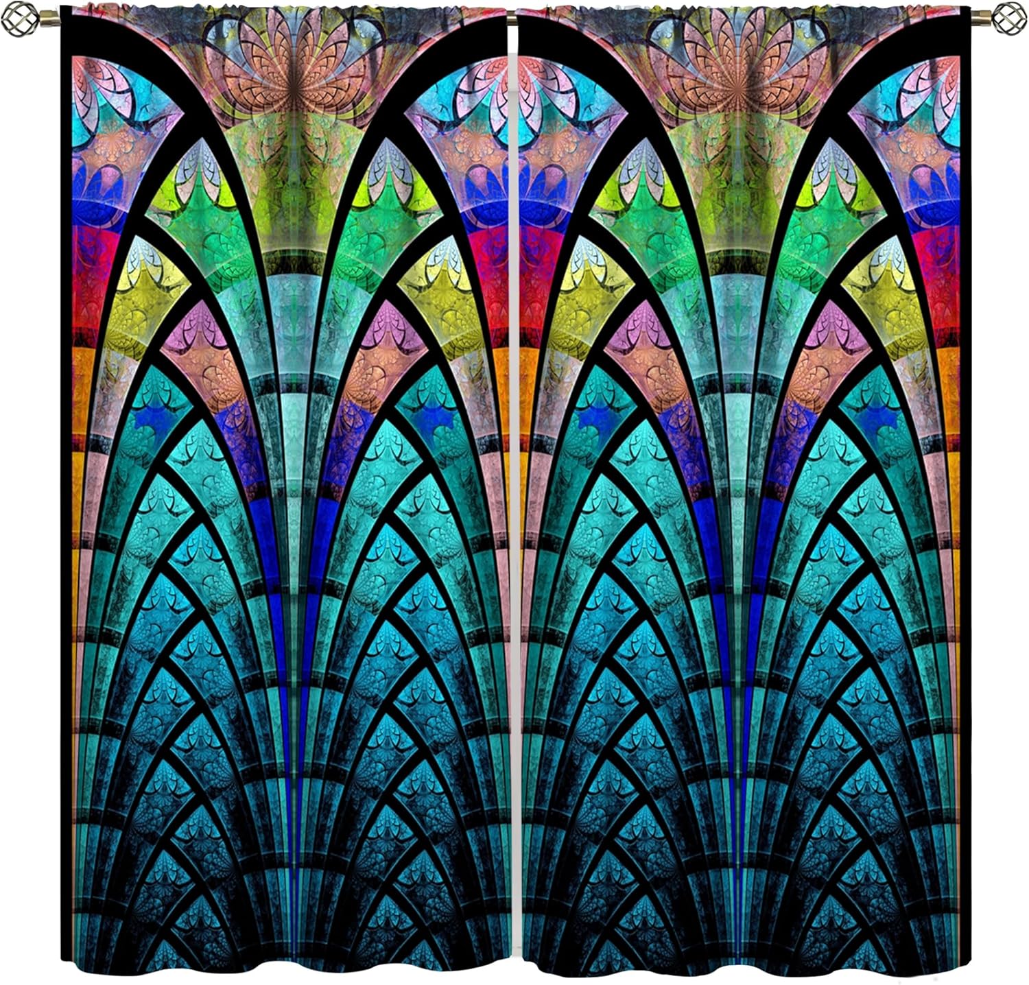 Stained Glass Curtains,Retro Design Style Colorful Abstract Art Home Decor Drapes for Bedroom Living Room Kitchen Window Treatment 2 Panels Set Total Size 42" W X 45" L Inch