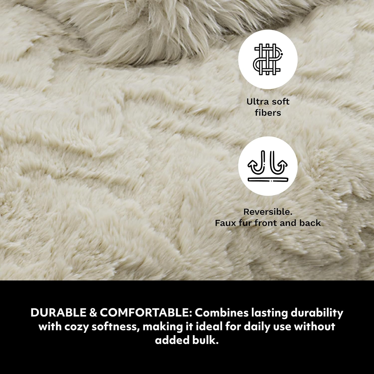 Mon Chateau Premium Reversible Queen Size Luxury Faux Fur Throw for Couch, Sofa, or Queen Size Bed - Plush Cozy Soft Blanket for Sleeping or Home Décor, 60" x 70" (Beige Jacquard)