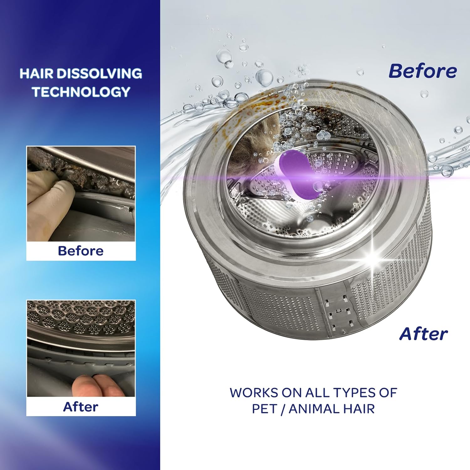 - Reduce Excessive Pet Hair Accumulation: Specially formulated for homes with pets, the special blend of active enzymes in our washer cleaner tablets helps dissolve hair and fur, reducing clogs and accumulation