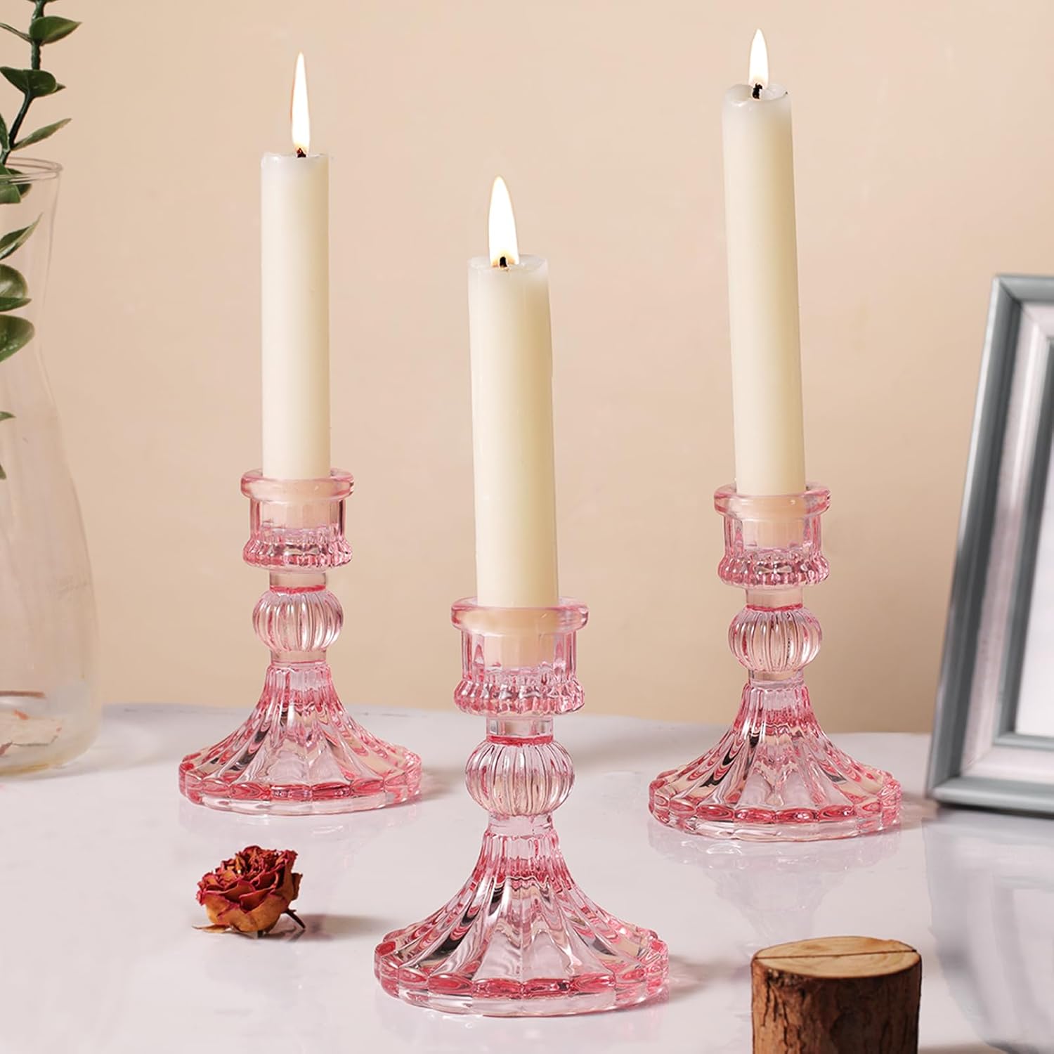 - Pink Candlestick Holders-- You will get 12pcs pink candlestick holders set, here is enough quantity for your daily use and never worry about what if one is broken. The top inner diameter 0.78'', bottom diameter is 2.95''x 4''H. Conveniently sized candle holder are suitable for many kinds of taper candles.