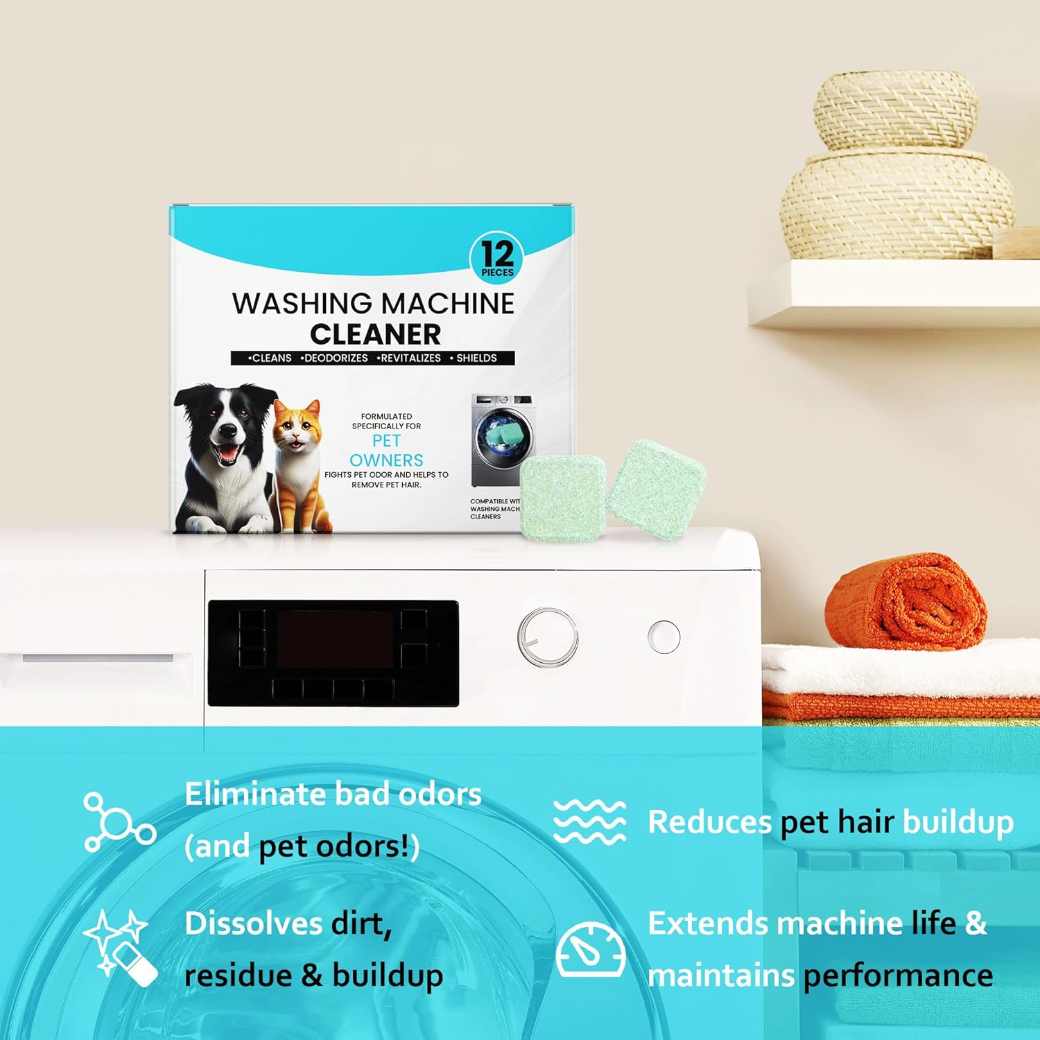 - POWERFUL REMOVAL OF PET ODORS: washing machine cleaning tablets contain tea polyphenols to eliminate pet odors from your washing machine, leaving your washing machine smelling fresh.