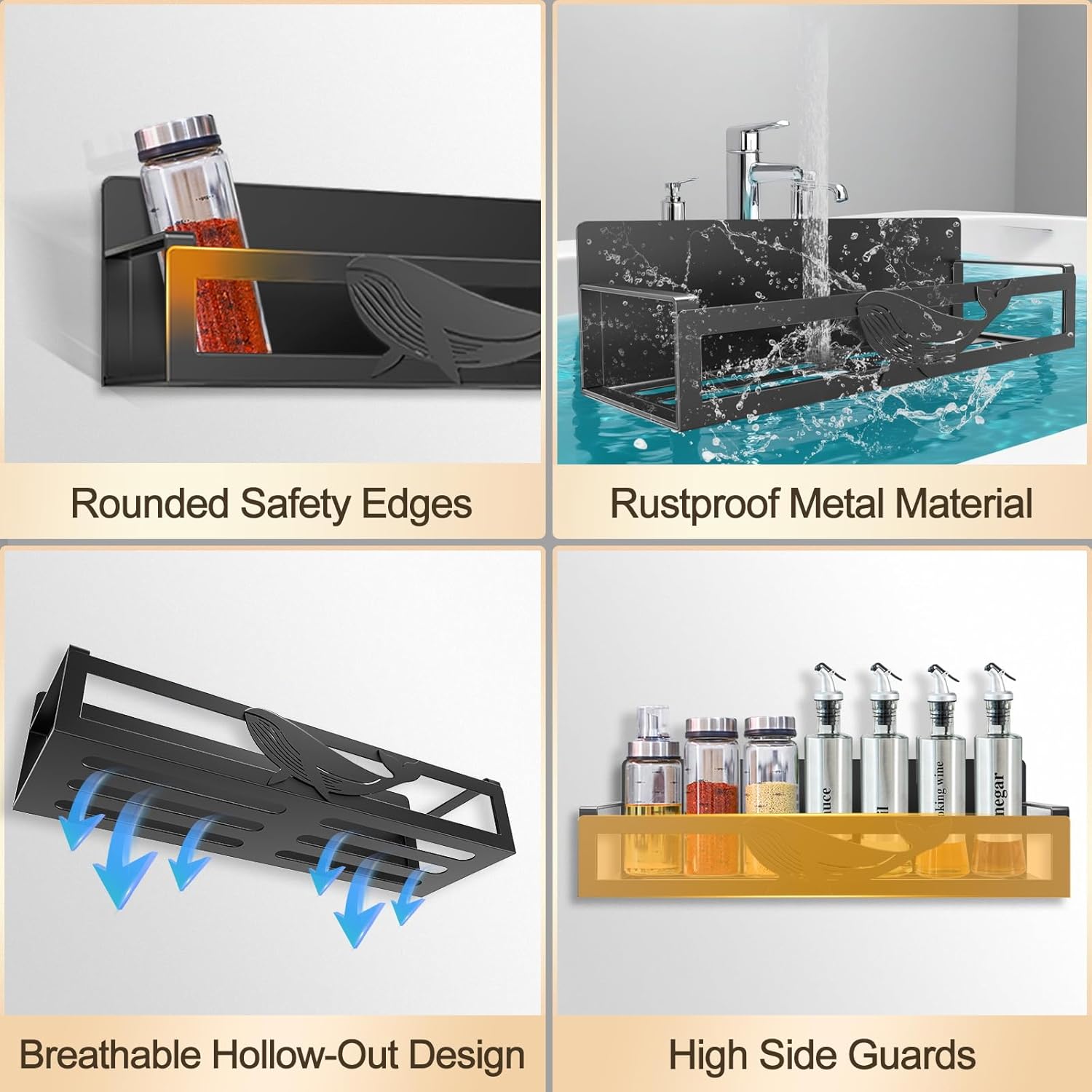 Magnetic Spice Rack for Refrigerator, 4-Pack Metal Seasoning Organizer for Kitchen Storage Organization, Magnetic Shelf for Fridge Space Saving Spice Organizer, Black