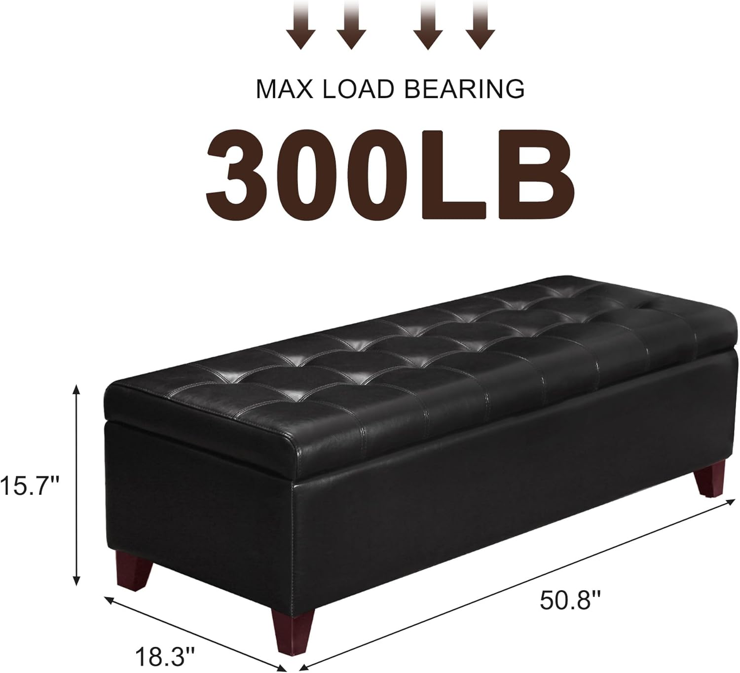 Joveco Storage Ottoman Bench, 51 Inch Leather Tufted Upholstered Bench for End Foot of Bed, Bedroom, Living Room, Black