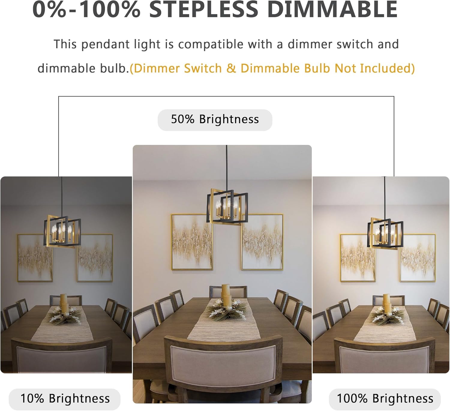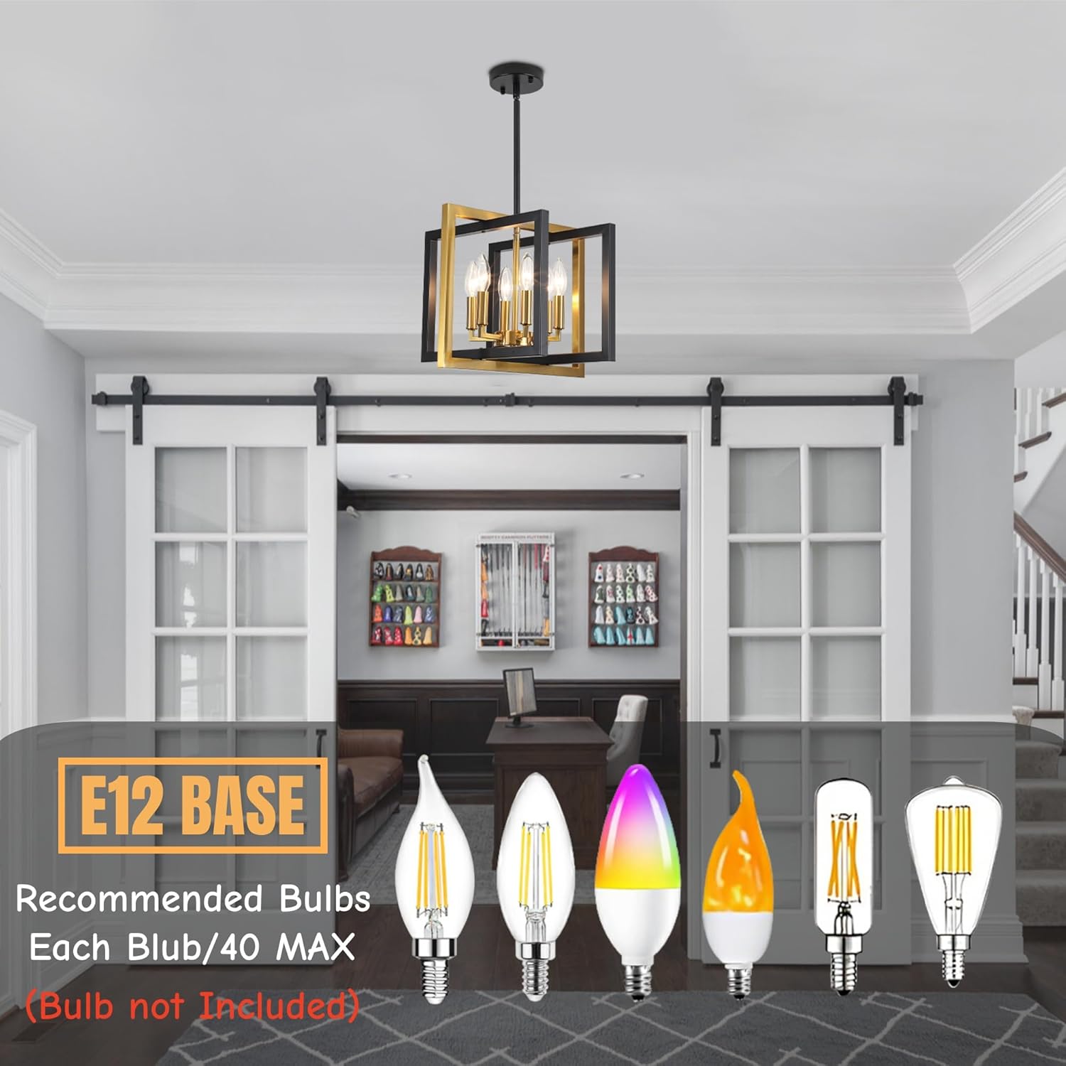 - Bulb Requirement: Equipped with 6 E12 bases, this dining room light fixture over table supports various bulb types, including incandescent, LED, CFL, and halogen (Bulbs NOT Included). Pair this black and gold chandelier farmhouse light fixture with dimmable bulbs and a compatible dimmer switch (Switch NOT Included) for adjustable lighting