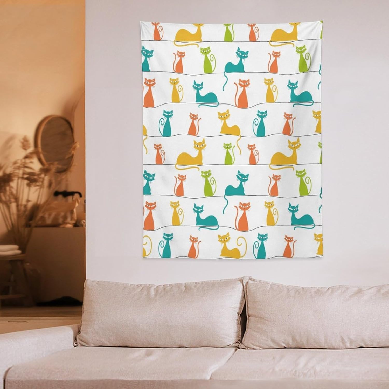 ICMOLYYENLO Boho Medieval Cat Tapestry, Abstract Atomic Starburst Geometric Aesthetic Art Wall Hanging For Bedroom Living Room Dormitory 30x40 Inches