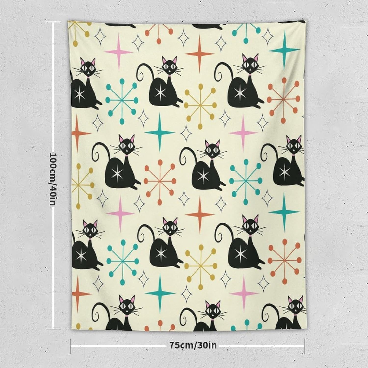 ICMOLYYENLO Abstract Cat Tapestry, Medieval Abstract Atomic Star Cat Vintage Home Wall Hanging Art Tapestry for Bedroom Living Room Dormitory 40x60 Inch