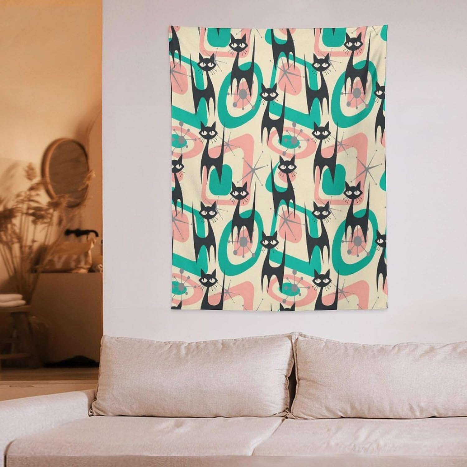 ICMOLYYENLO Boho Medieval Cat Tapestry, Abstract Atomic Starburst Geometric Aesthetic Art Wall Hanging For Bedroom Living Room Dormitory 60x60 Inches