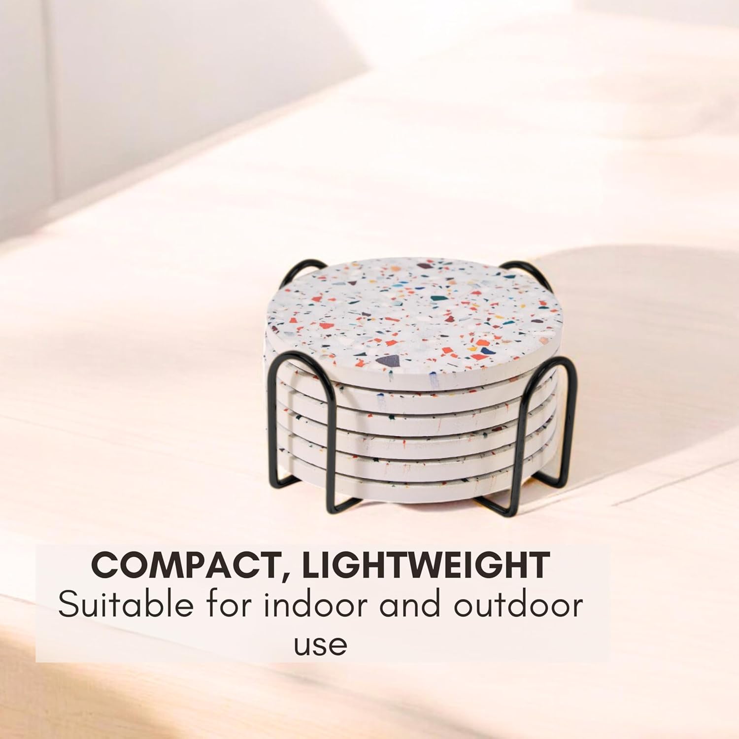 - Perfect Fit for Every Cup: This ceramic coasters set of 6 features a 10cm diameter that fits most mugs, tumblers, and glasses. Ideal as cup coasters or desk coasters, each absorbent coaster catches drips and condensation to protect surfaces in any setting—home, bar, or office.