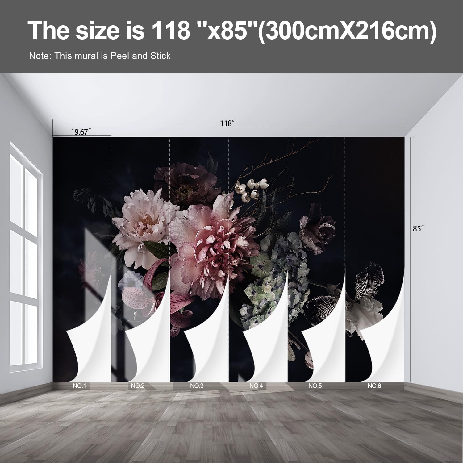 Black Floral Wall murals Peel and Stick Flowers Wallpaper for Bedroom Living Room - 85"x118"