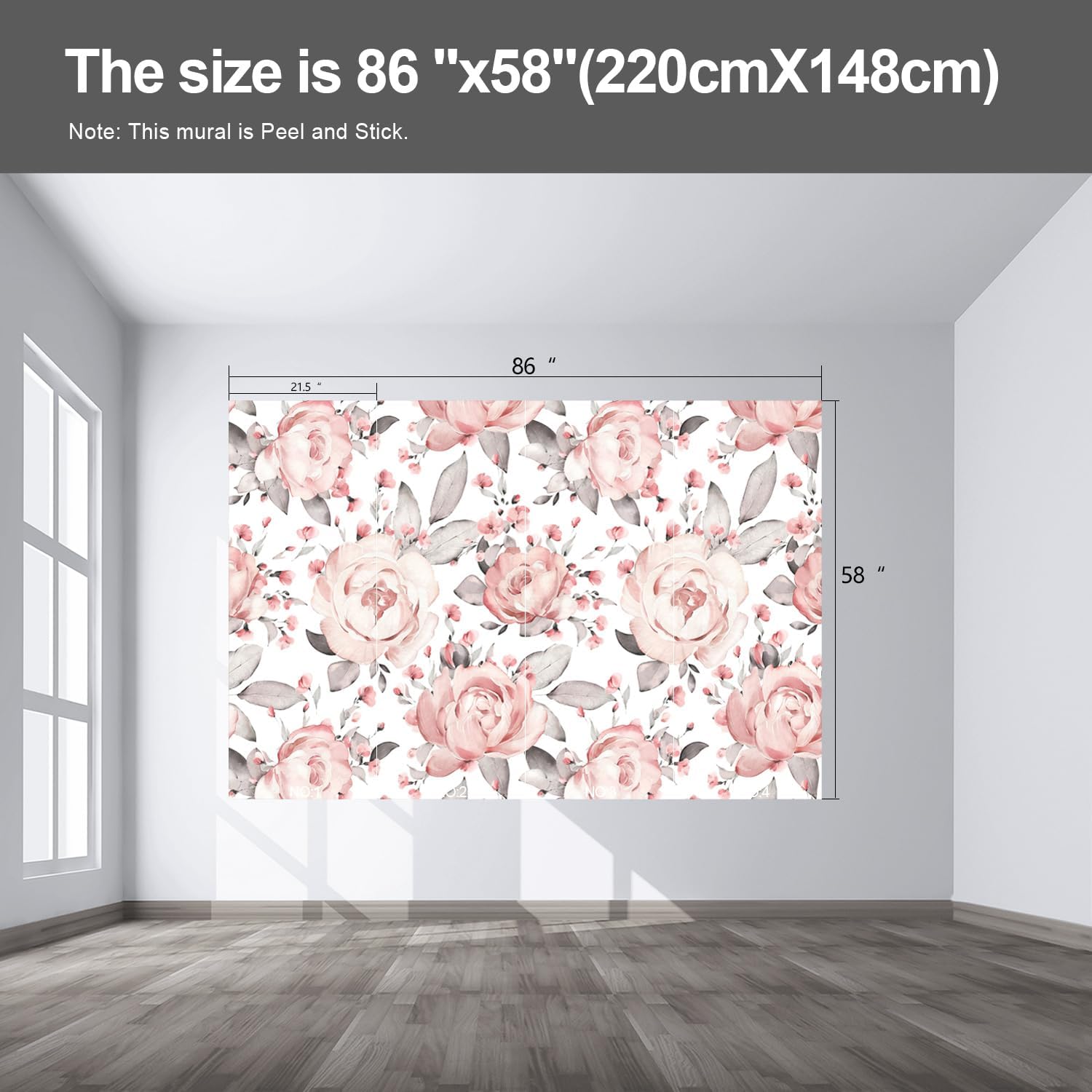 Pink Floral Wall murals Peel and Stick Flowers Wallpaper for Bedroom Living Room - 58"x86"