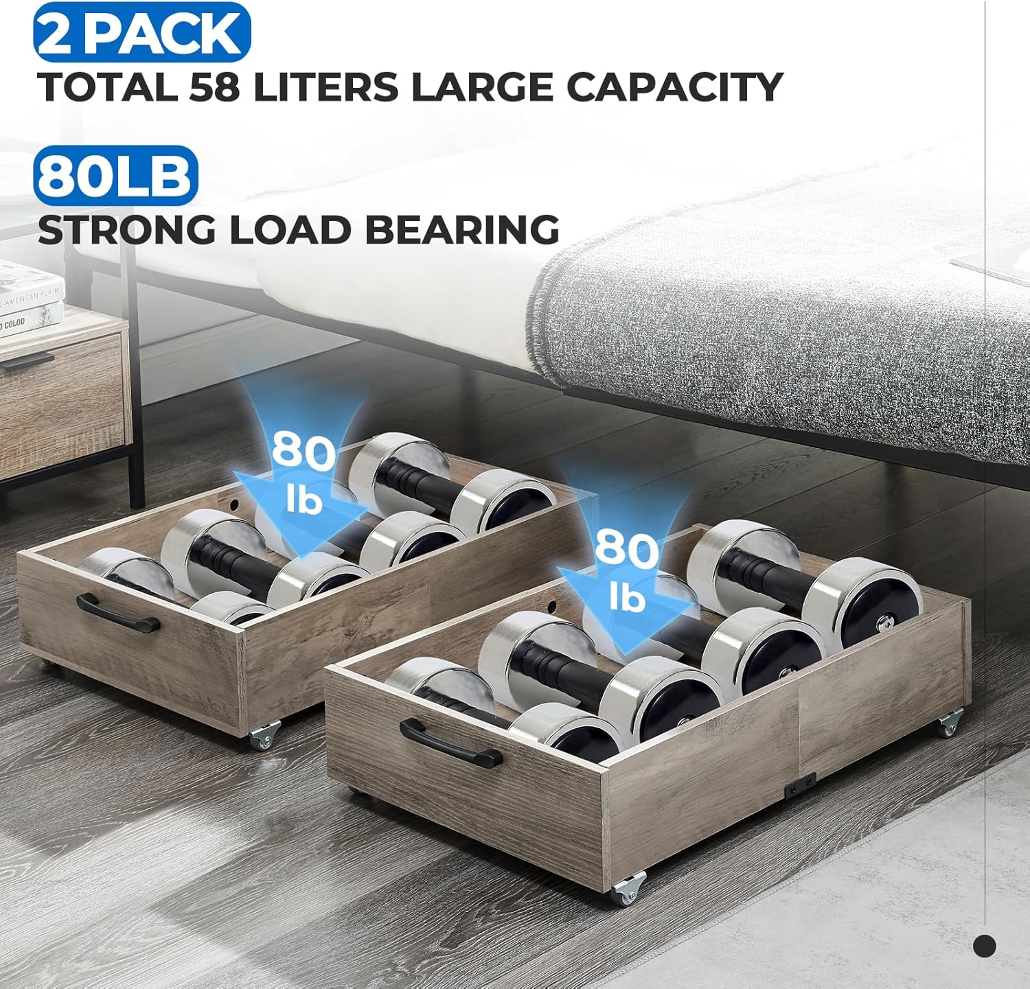 - 【Massive 58L Storage Capacity (Set of 2)】: Maximize your hidden space! This 2-pack set provides a 58L total volume to effortlessly store off-season clothes, shoes, linens, or toys—keeping your bedroom clutter-free and organized