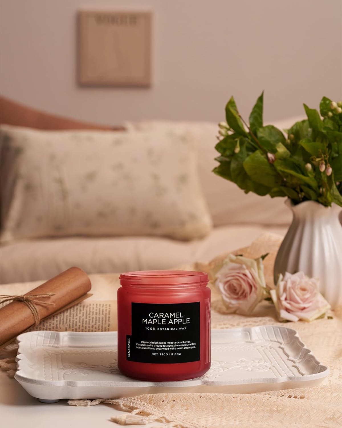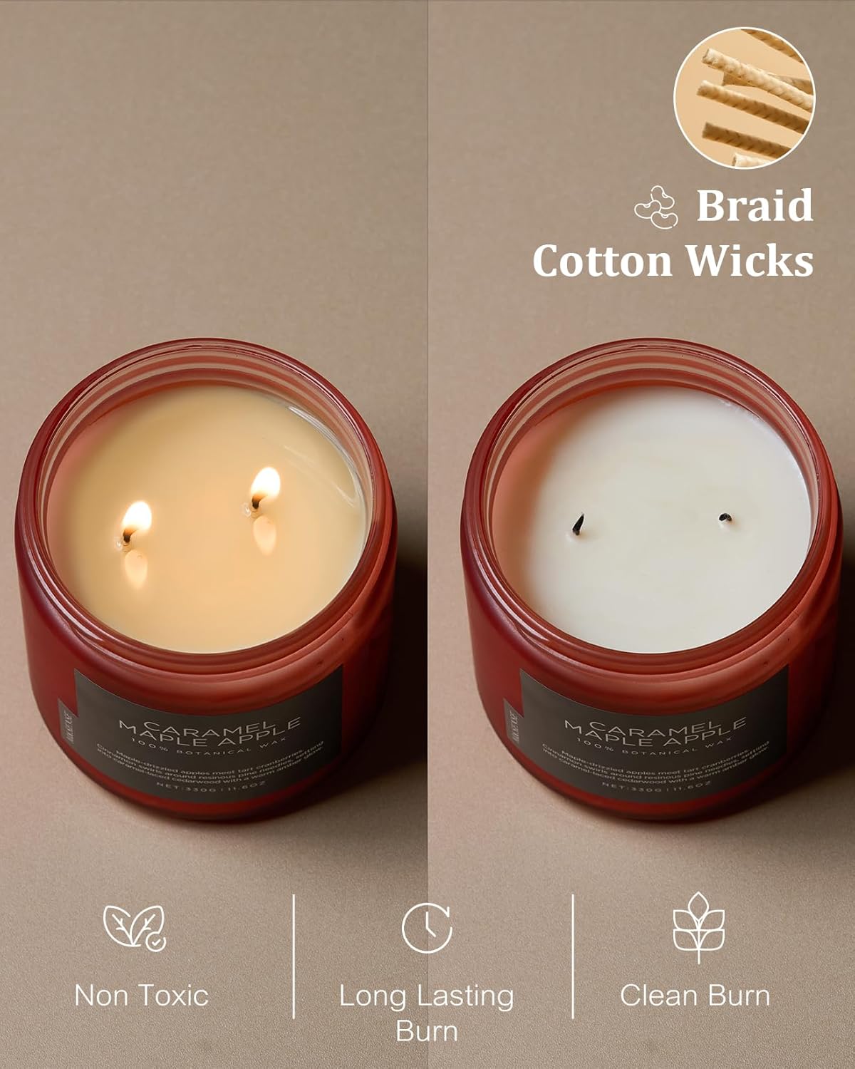 M&SENSE Caramel Apple Pie Candles for Home Scented, Natural Soy Wax 11.6oz Long Lasting 70 Hours Clean Non Toxic Large 2 Wick Candle Gifts for Thanksgiving Housewarming