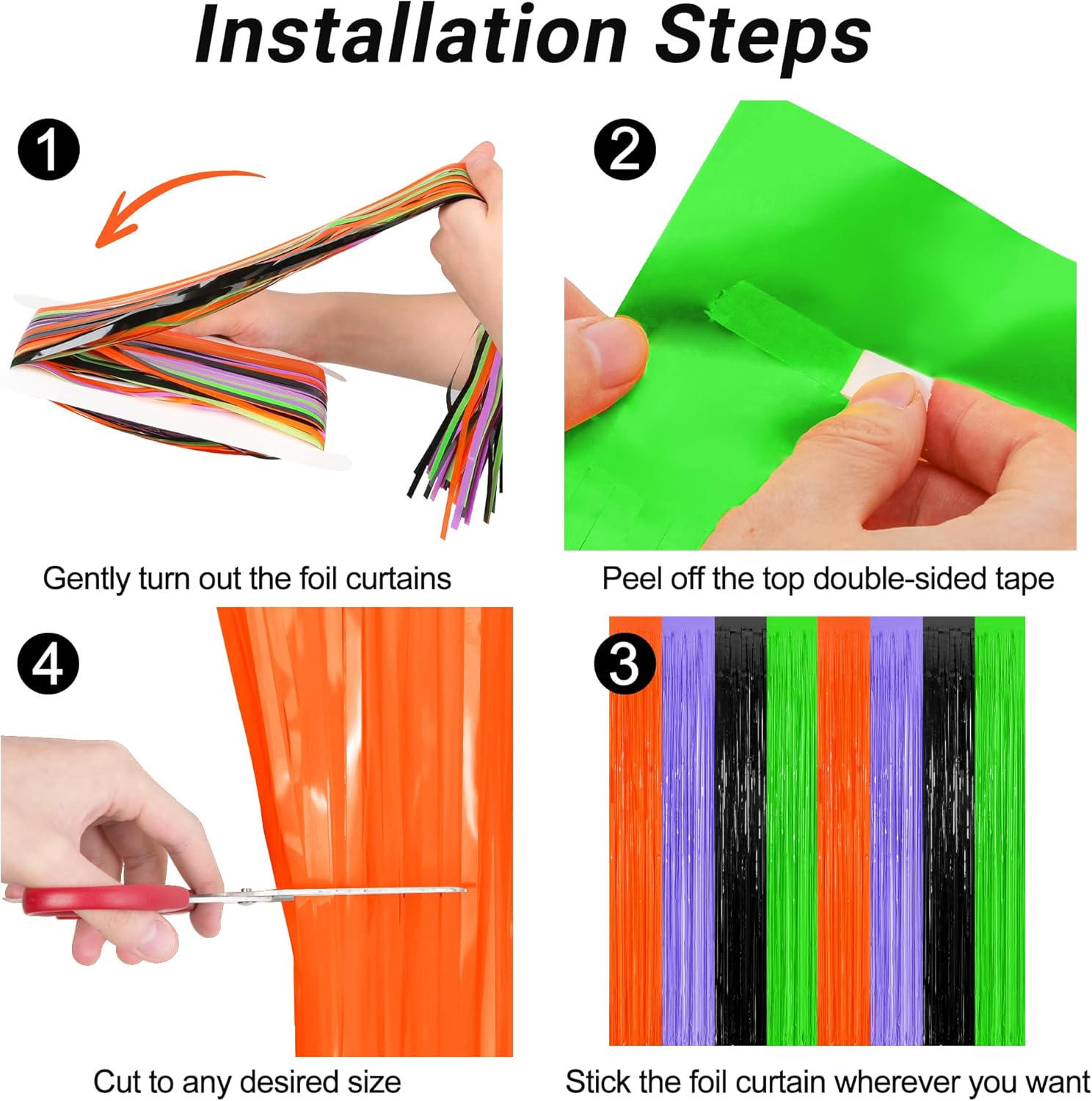- Easy to Install: These Halloween fringe curtains have adhesive paper on the top, just peel the paper off and stick it where you need it, then cut it to the size you need.