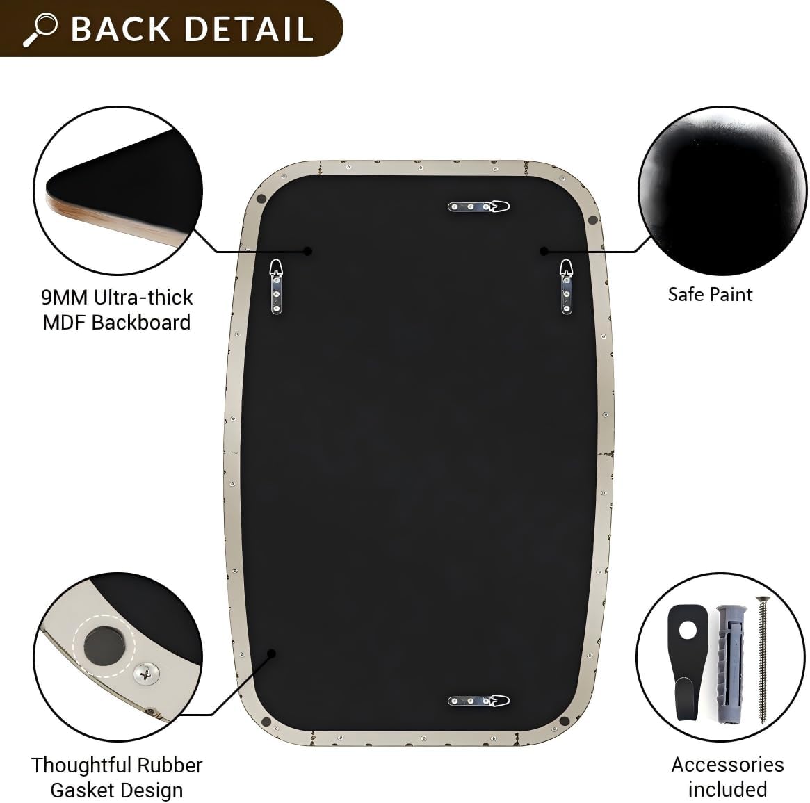 - Premium Quality: Crafted from heavy-duty SUS304 stainless steel, this oval mirror is sturdy, durable, anti-scratch, and rustproof; The no-distortion HD glass provides clear reflections; the MDF backboard ensures safety and strength against humidity