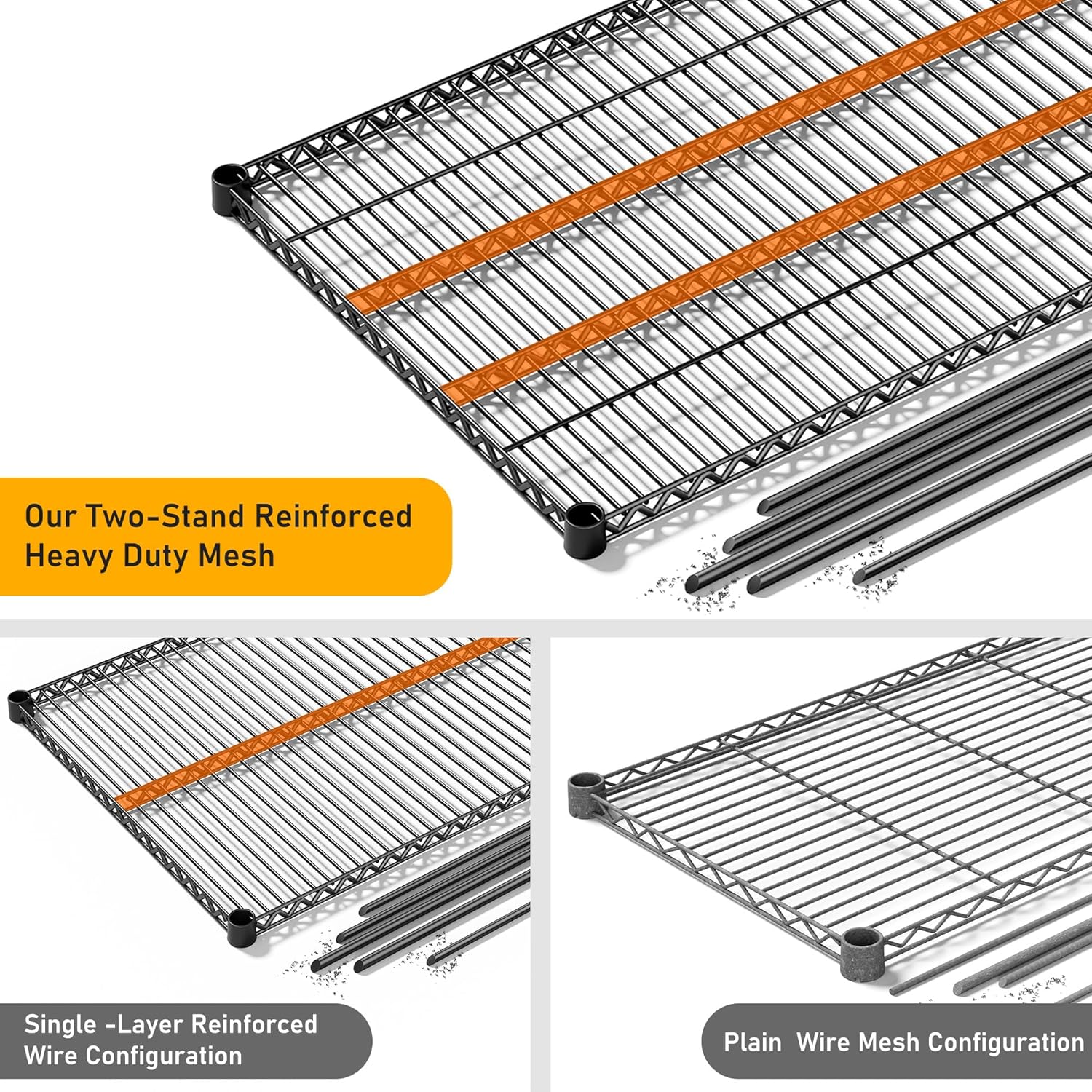 REIBII 81.5''W Storage Shelves 3680LBS Garage Shelving Heavy Duty 4 Tier Metal Shelving Unit Adjustable Wire Shelf and Storage Pantry Shelves for Kitchen Garage,81.5Wx23.62Dx70.86H,Black