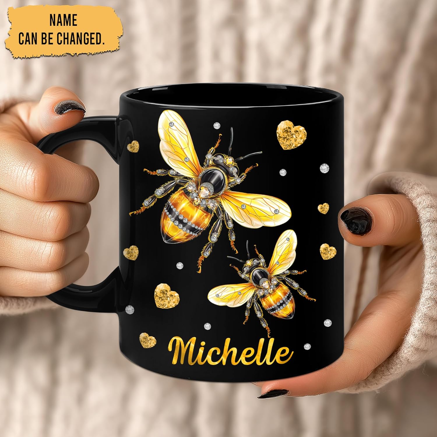 Hyturtle Personalized Jewelry Bee Mug - Bee Keeper Gifts For Women Lovers Teacher - Honey Gifts For Beekeeper Farmer On Birthday - Queen Honeycomb Decor - Custom Coffee Cup Ceramic Mug 11 Oz 15 Oz
