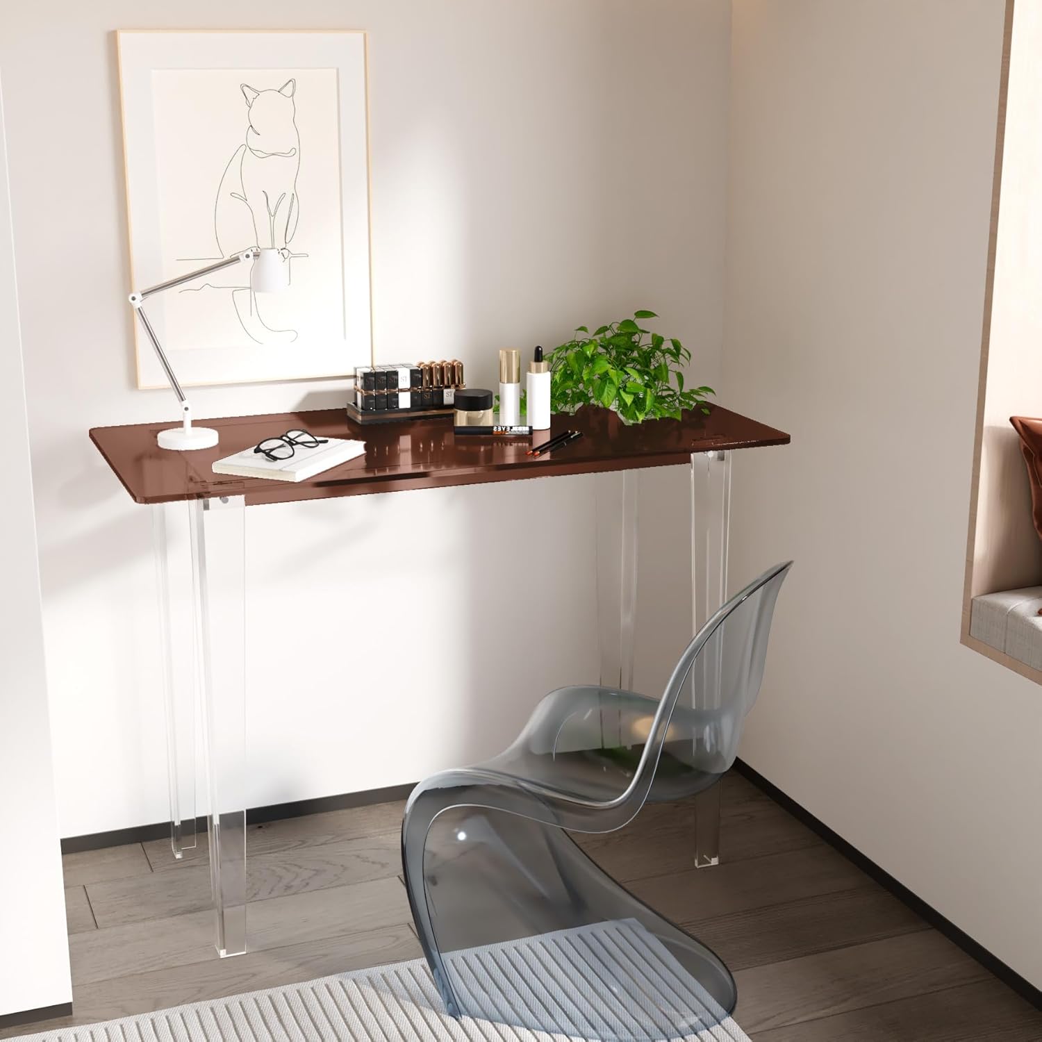Acrylic Desk, Modern Study Table for Home Office - Extended Surface Multi-Purpose Console & Entryway Table, Sturdy Lightweight Design (42.5-inch, Yellowtea)