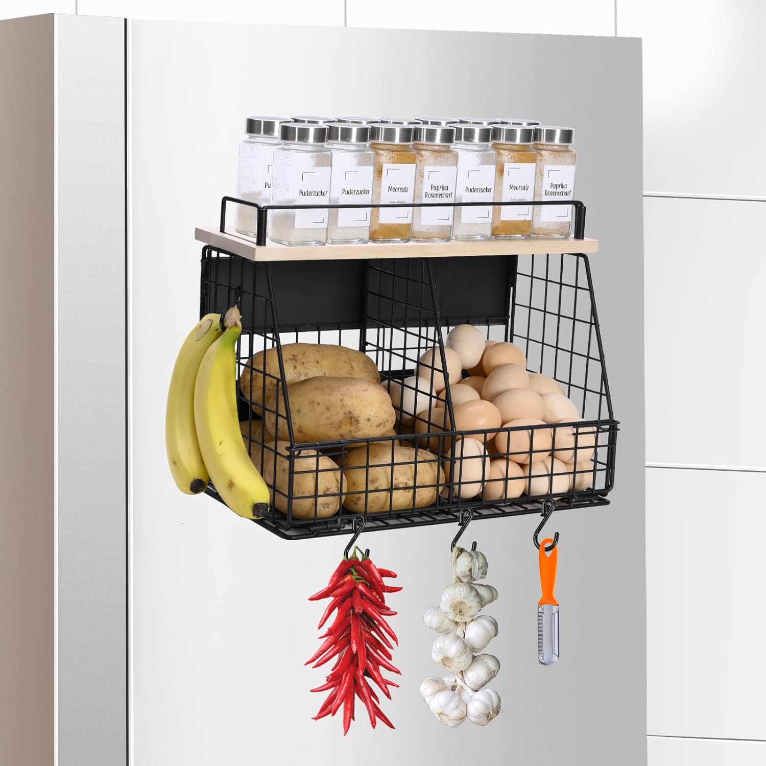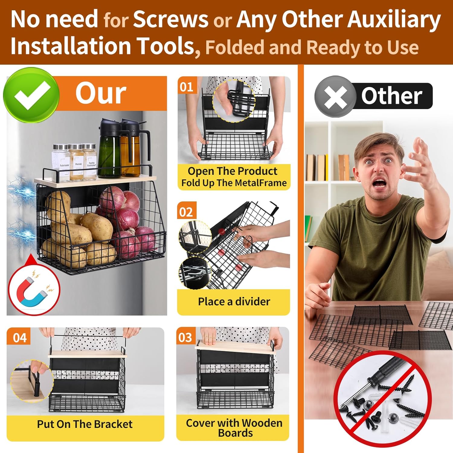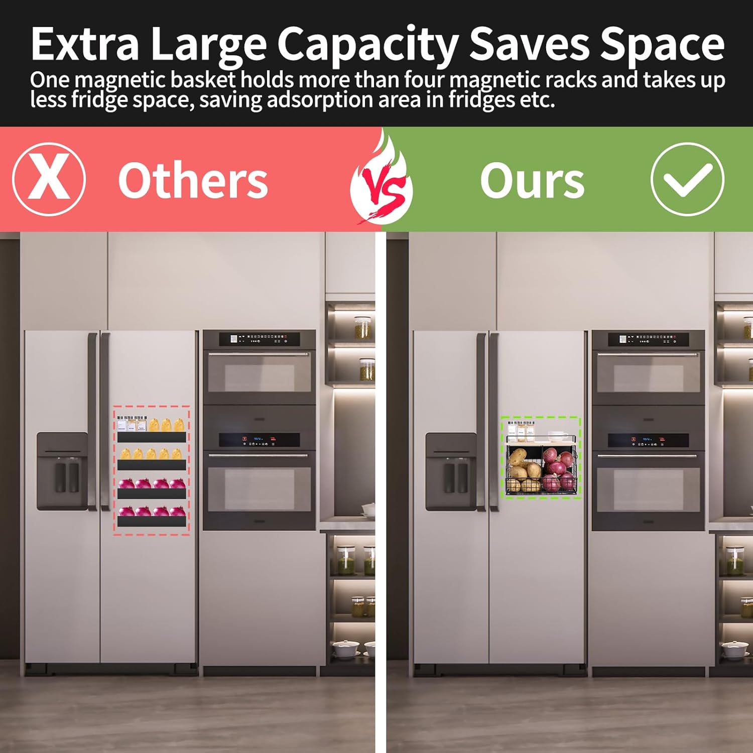 Large Magnetic Shelf for Fridge, Fruit and Vegetable Storage Wire Basket, Potato And Onion Storage Bin for Kitchen Organizers, Magnetic Spice Rack for Refrigerator, Kitchen Counter, RV and Laundry