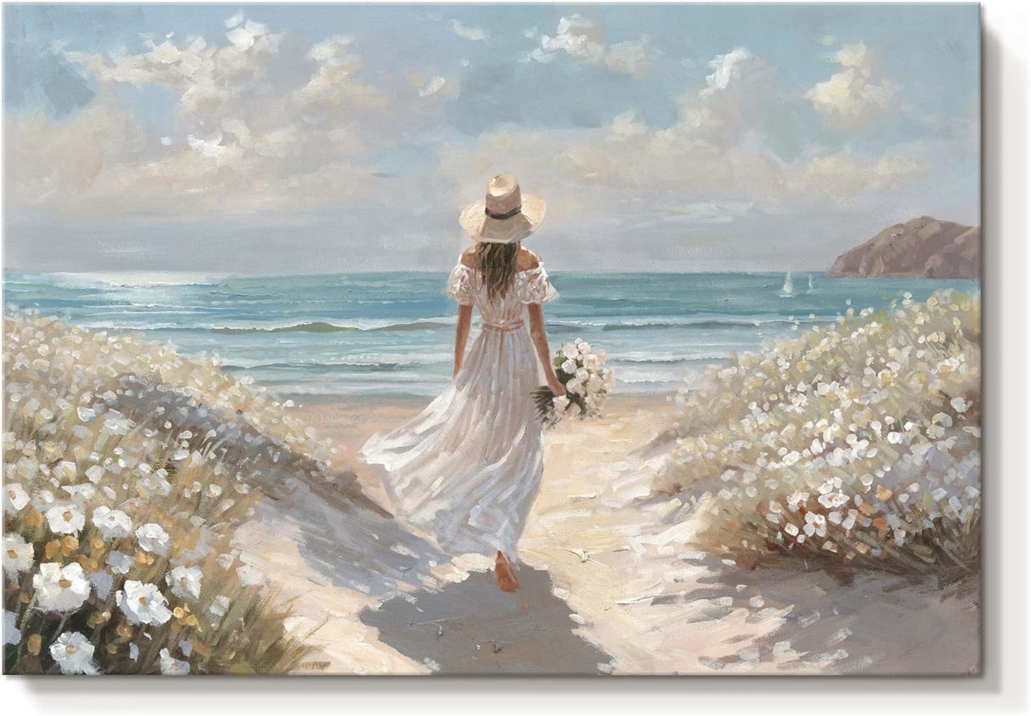 - Premium Beach House Artwork Crafted with gallery-wrapped canvas and a solid wood frame, this ocean wall art withstands daily wear. The textured brushstrokes mimic real seascape paintings, making it ideal for coastal home decor.