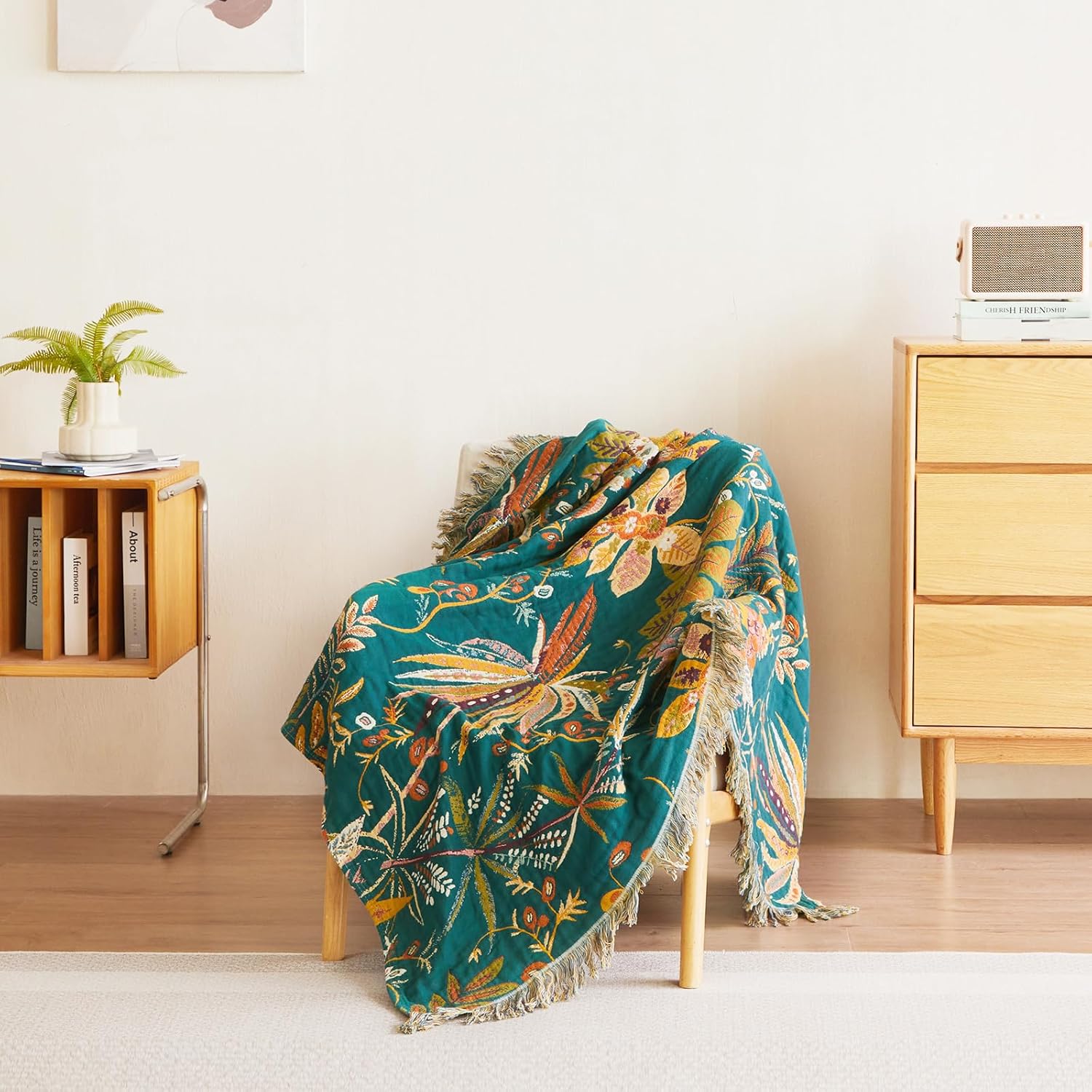 - 【MATERIAL】100% cotton,our boho throw blanket is made of high quality of 100% cotton,free from harmful substances and harsh chemicals,universal for all seasons,quite soft and breathable,bringing you warmth in cold days.The cotton blanket measures 60"x50" inch (127 x 153cm) and the weight is 1.4 lbs (0.65kg).