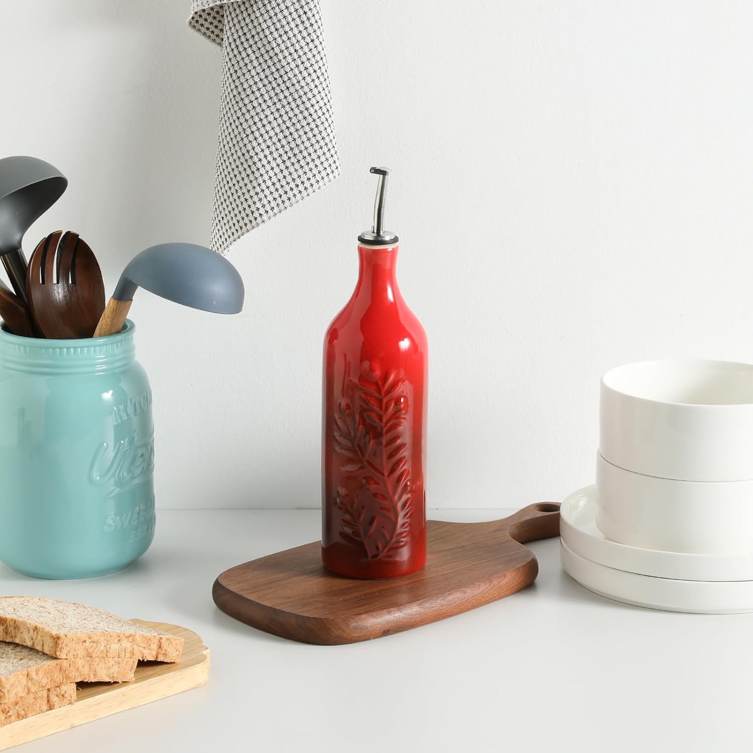 - Durable and Precise Pouring Control - The olive oil bottle fired at high temperatures, to form a smooth glazed surface, strength and durability. The carefully designed spout that allows for easy pouring without any messy drips or spills.