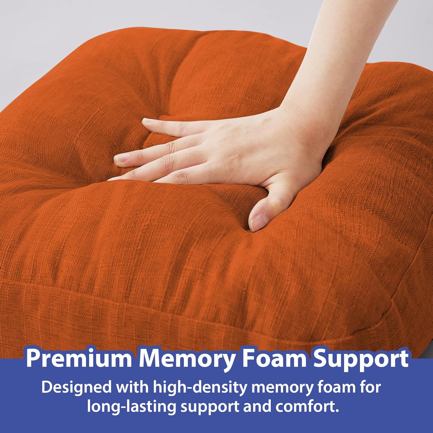 Chair Cushions for Dining Chairs, Dining Chair Cushions, Tufted Indoor Chair Pads with Ties & Non Slip Backing, Seat Cushions for Kitchen Chairs 16.5” x 16.5” x 3.5”, Set of 6, Orange