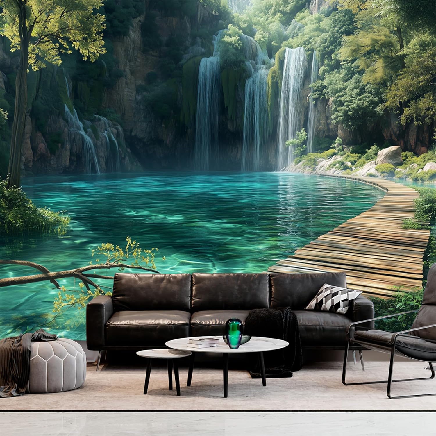 BSFHH Nature Tapestry Forest Tree Sea Cave Wall Hanging, Stream Through Rainforest Landscape Wall Art Tapestry for Bedroom Living room (Waterfall, 110" × 87", Unframed)