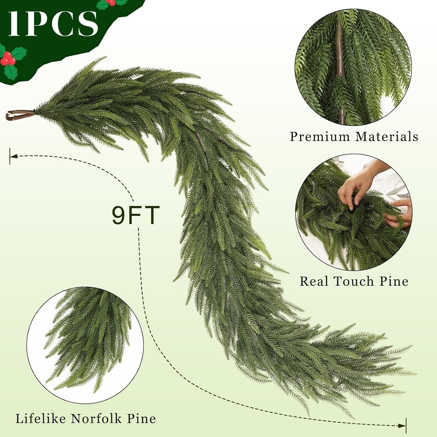 - Lifelike : Artificial norfolk pine garland is crafted with exquisite techniques to create thick pine branches,compared to other garland, it is fuller, more layered, and more realistic.perfectly adapting to various Christmas decoration scenarios.