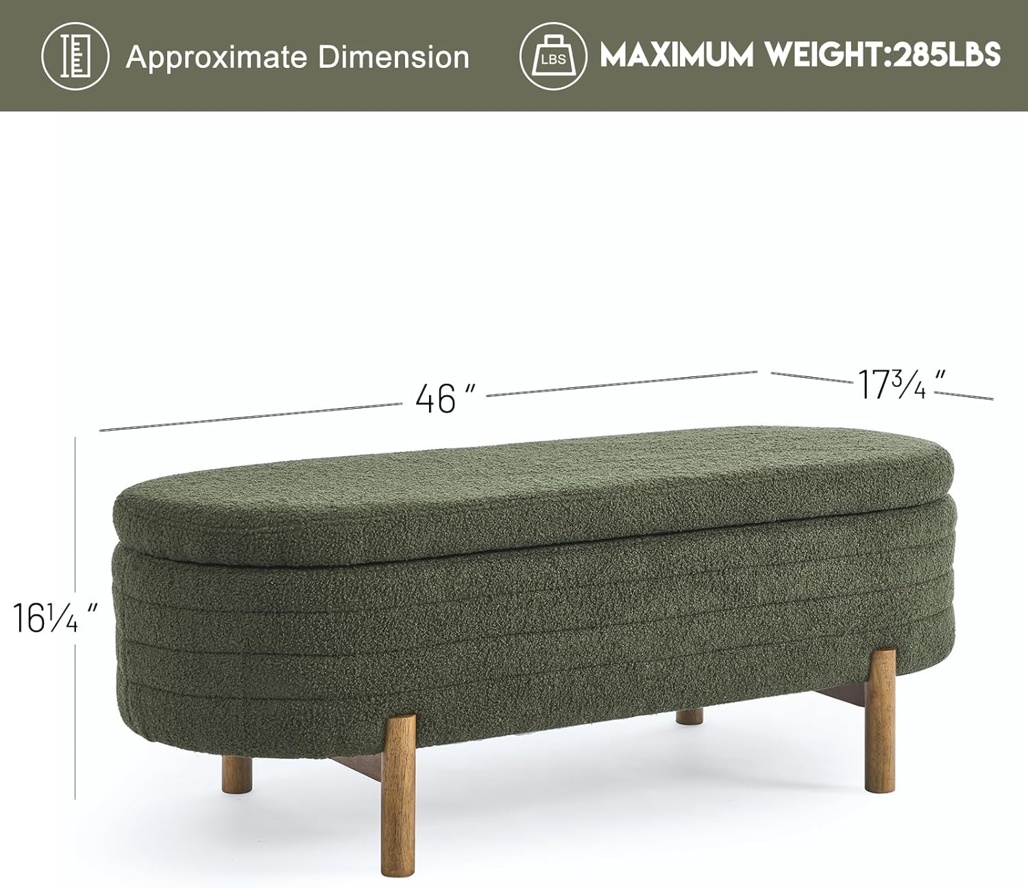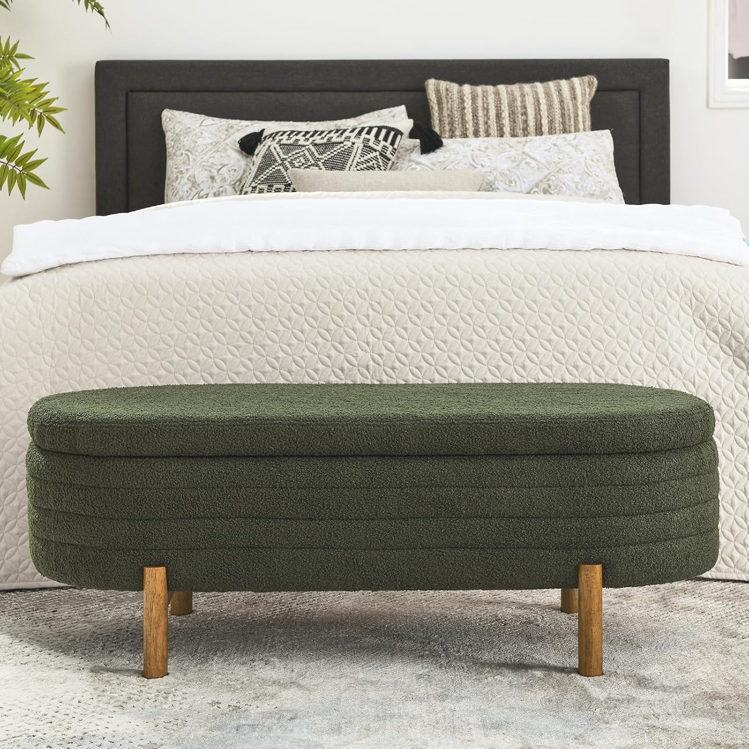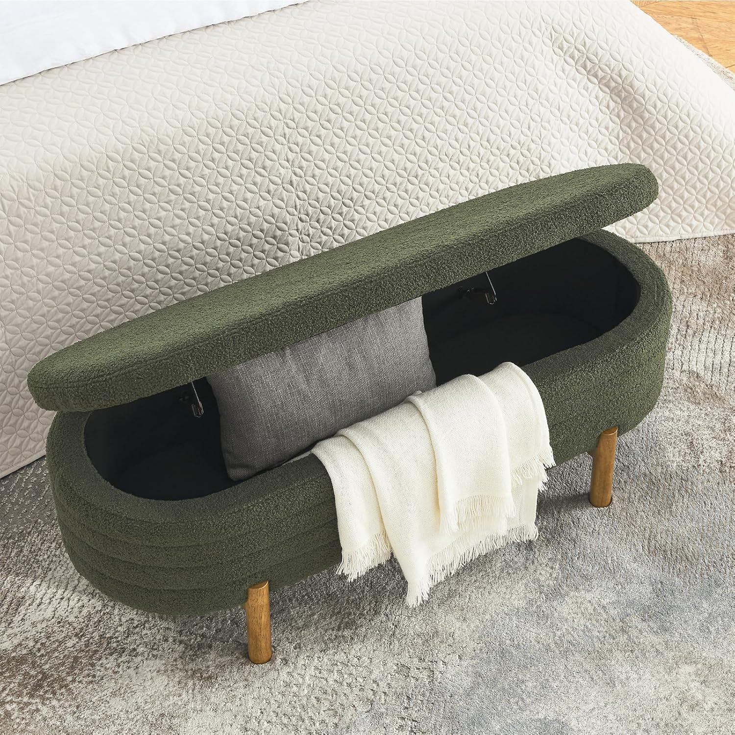 Furniliving 46” Storage Benches, End of Bed Bench with Button-Tufted Large Upholstered Storage Ottoman Teddy Window Bench with Storage Shoe Cabinet Bench, for Bedroom, Entryway, Closet, Green