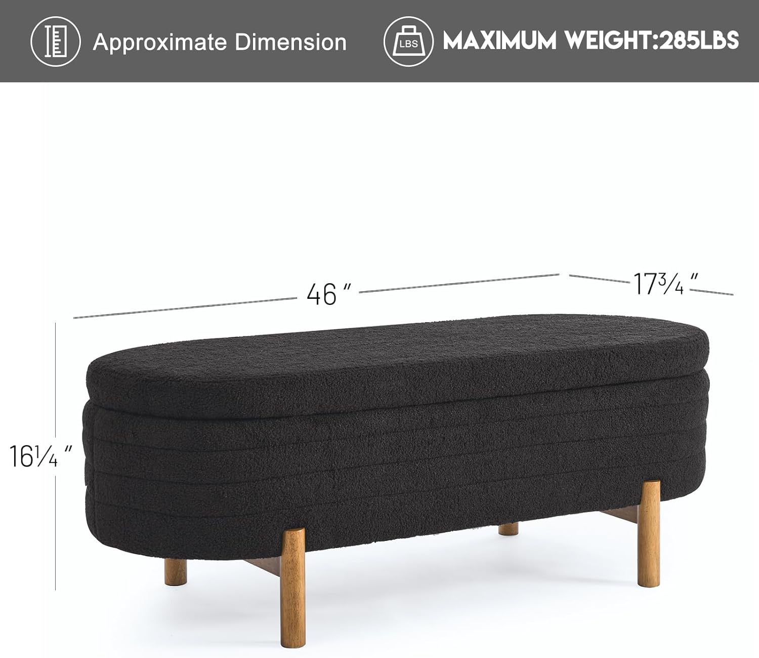 Furniliving 46” Storage Benches, End of Bed Bench with Button-Tufted Large Upholstered Storage Ottoman Teddy Window Bench with Storage Shoe Cabinet Bench, for Bedroom, Entryway, Closet, Black