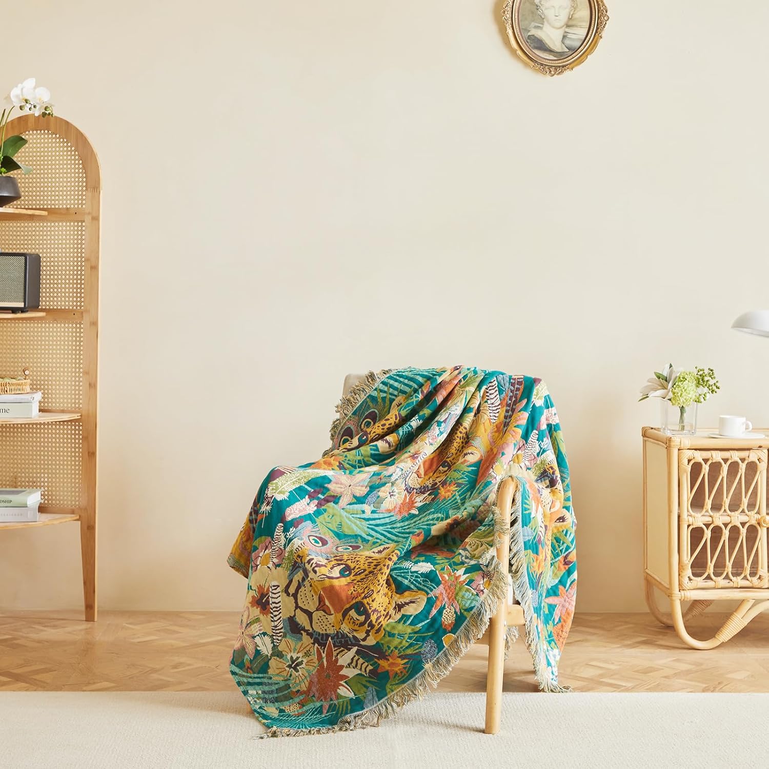 MSGKV Throw Blanket for Couch Bed Cotton Muslin Breathable Leopard Animals Twin Size Blanket 60"x80" for All Seasons Lightweight Farmhouse Blankets