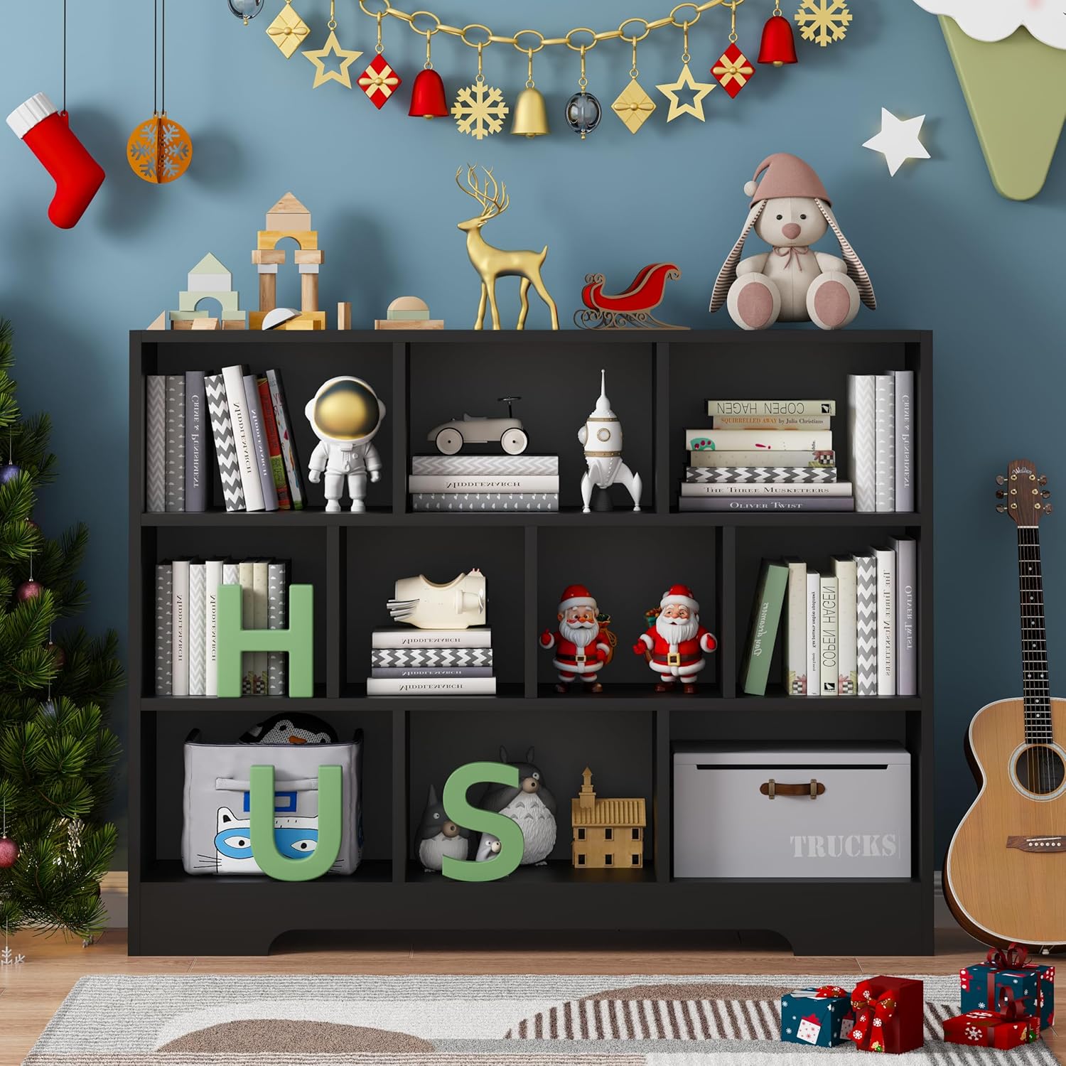 Book Shelf, 10 Cubes Storage Organizer, 3-Tier Open Shelf Wooden Bookcase, Freestanding Balck Bookshelf Cube Shelf for Bedroom, Living Room, Home Office