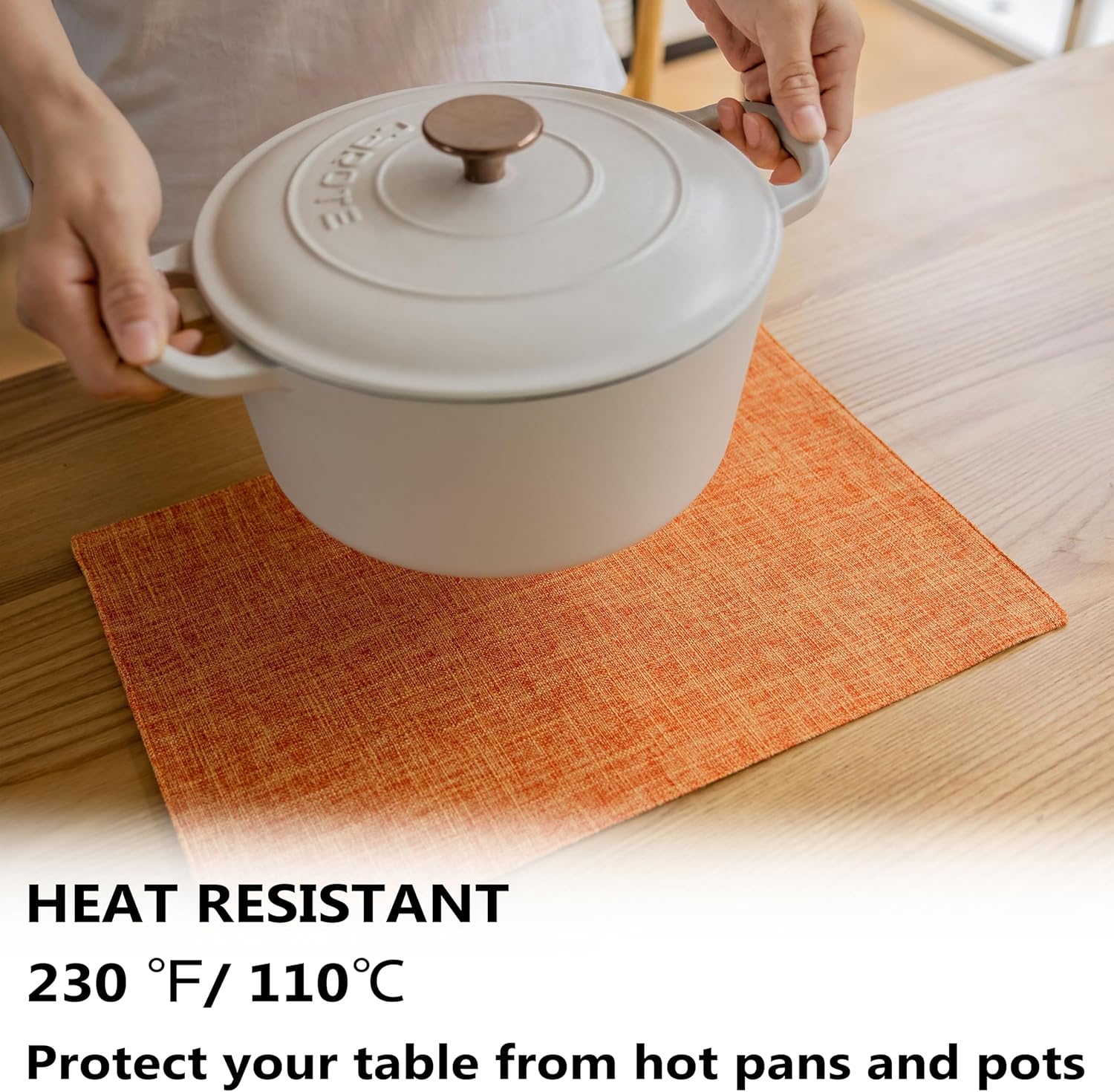 Demetex Orange Fall Placemats Set of 8 Linen Textured Fabric Place Mats Rectangle Cloth Table Mats for Thanksgiving Home Office Table Decor, 13x19 inch, Orange