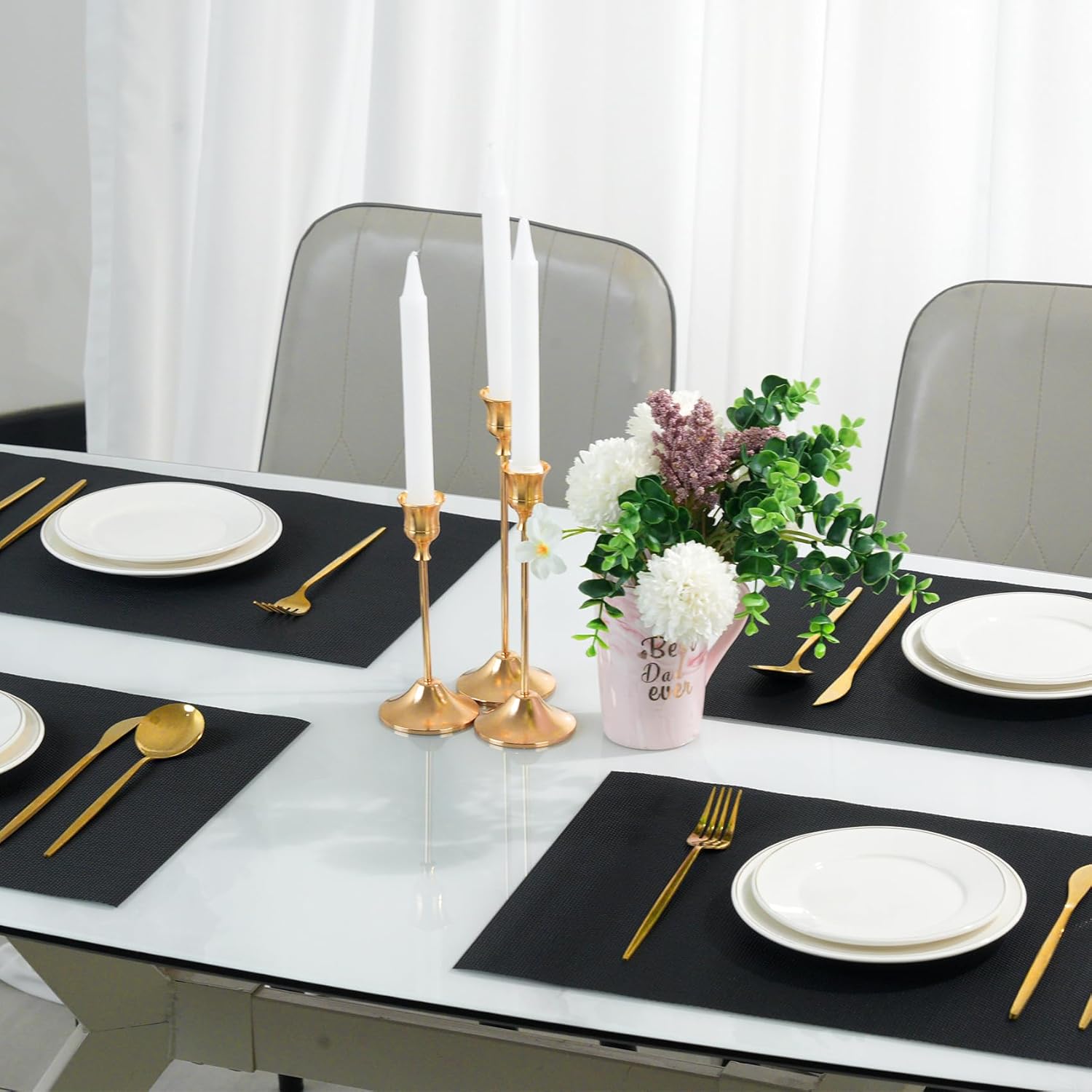 Placemats Set of 8,Non-Slip PVC Weave Table Mats Easy to Clean,Heat Resistant Place Mats for Kitchen Dining Table Decoration Indoor Outdoor,Black