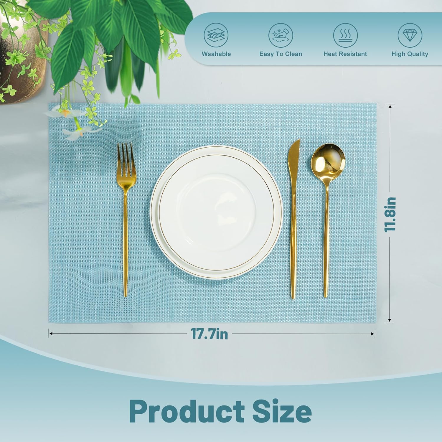 Placemats Set of 8,Non-Slip PVC Weave Table Mats Easy to Clean,Heat Resistant Place Mats for Kitchen Dining Table Decoration Indoor Outdoor,Blue