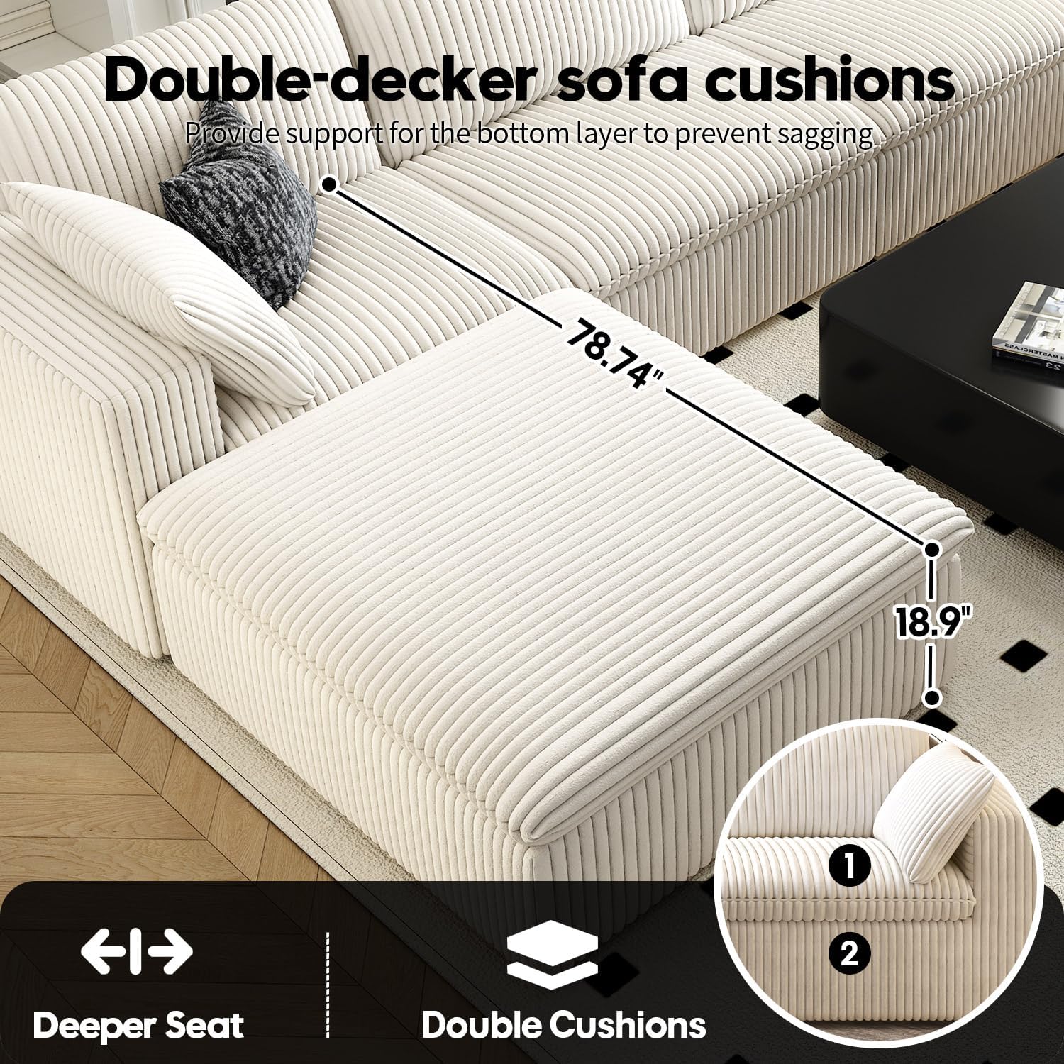 - Soft Corduroy Fabric: Indulge in the softness of our upgraded, wrinkle-resistant corduroy fabric. The plush texture adds both warmth and sophistication to any room, while its durable, high-quality material ensures long-lasting comfort for any season