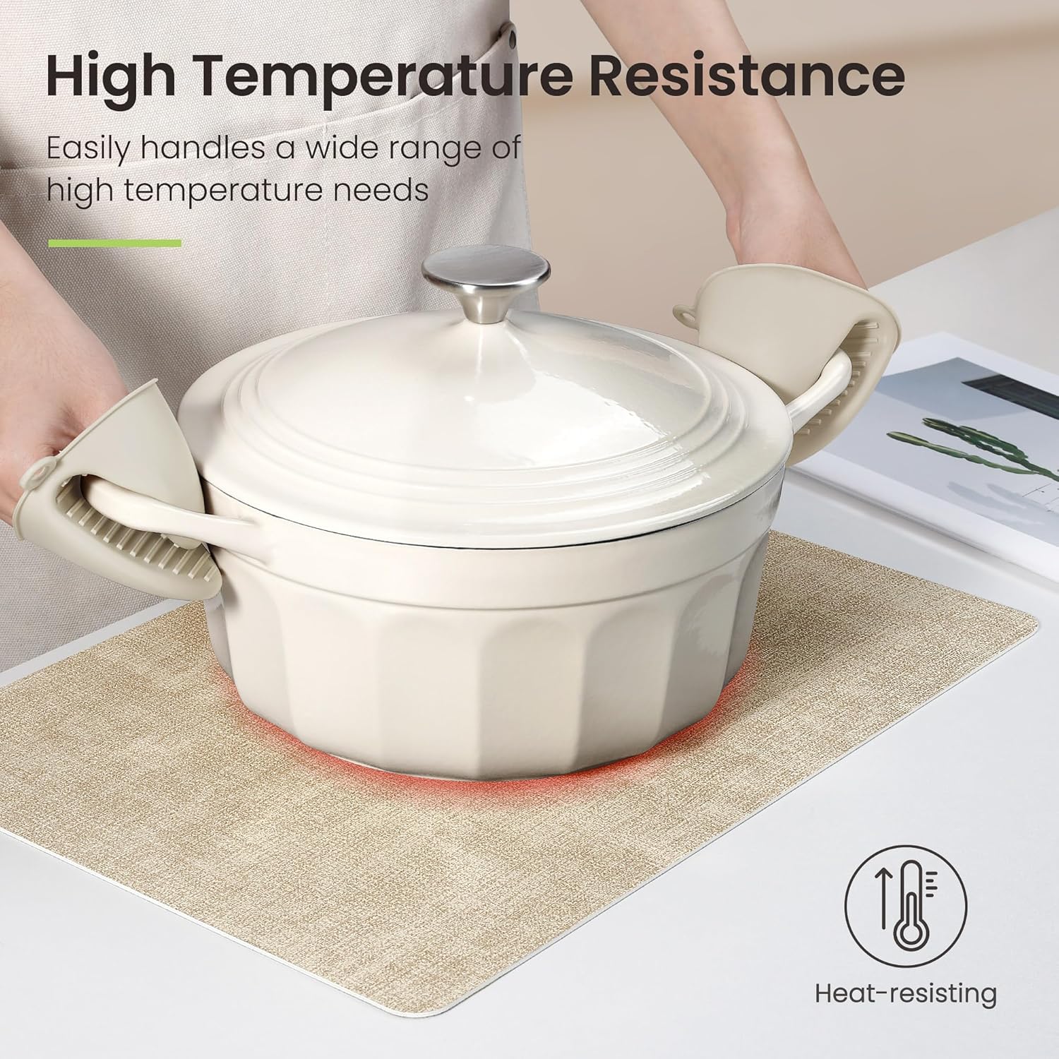 - PROTECT YOUR TABLE: Our placemats are 2 mm thick and can withstand the placement of hot items, protecting the table from hot plates and dishes. Their thickness gives them excellent water and stain resistance, protecting the table's cleanliness and integrity and enhancing your dining experience